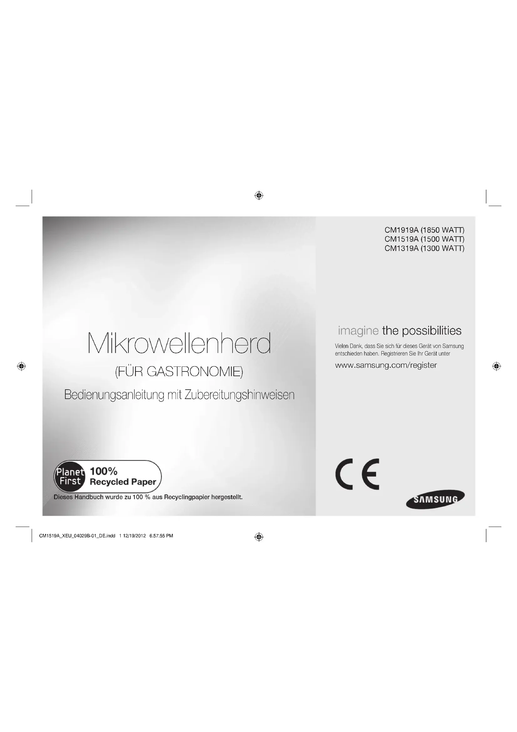 CM1519A - Four à micro-ondes SAMSUNG - Notice d'utilisation et mode d'emploi gratuit