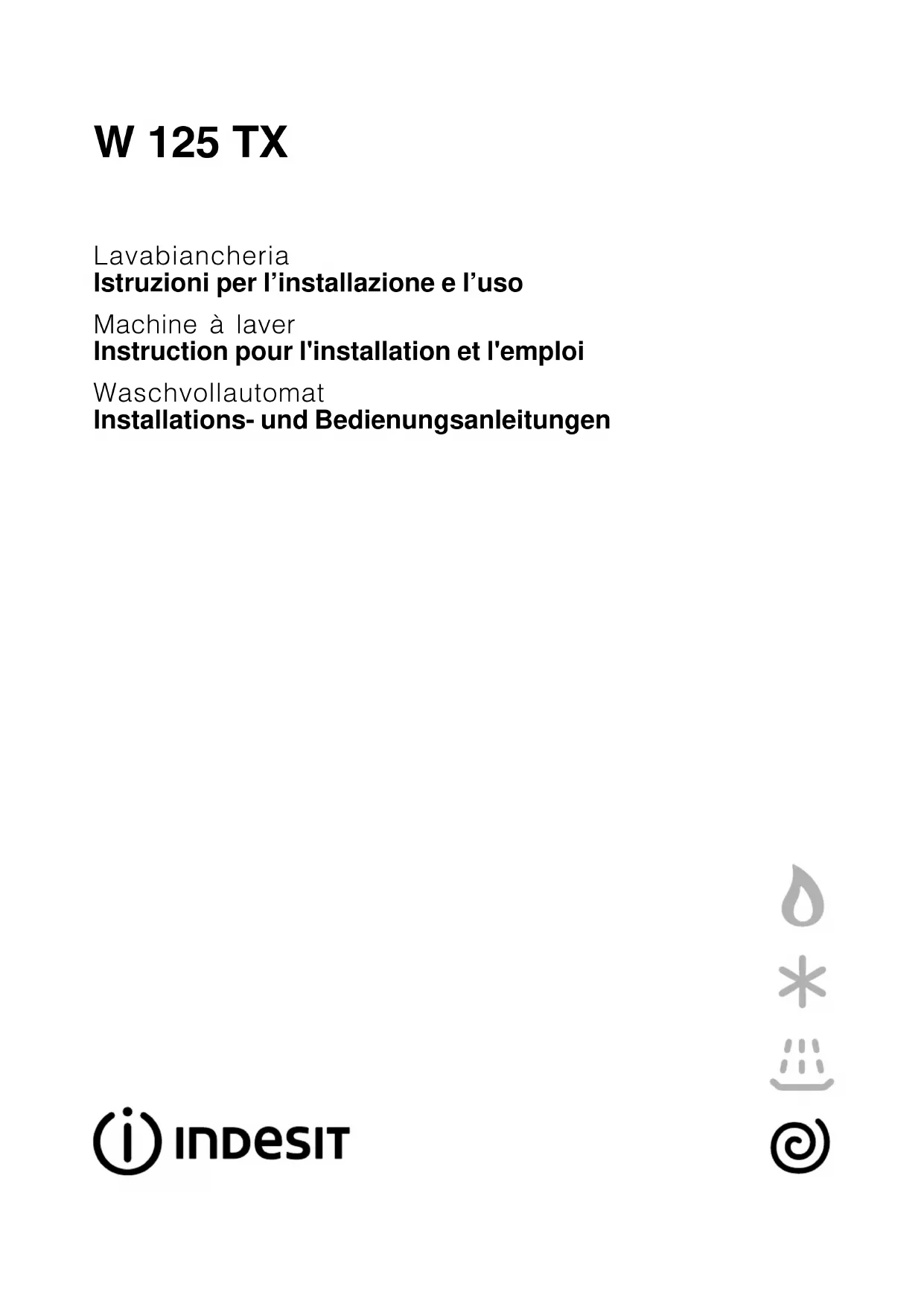Retrouvez gratuitement la notice de l'appareil W 125 X INDESIT au format PDF.