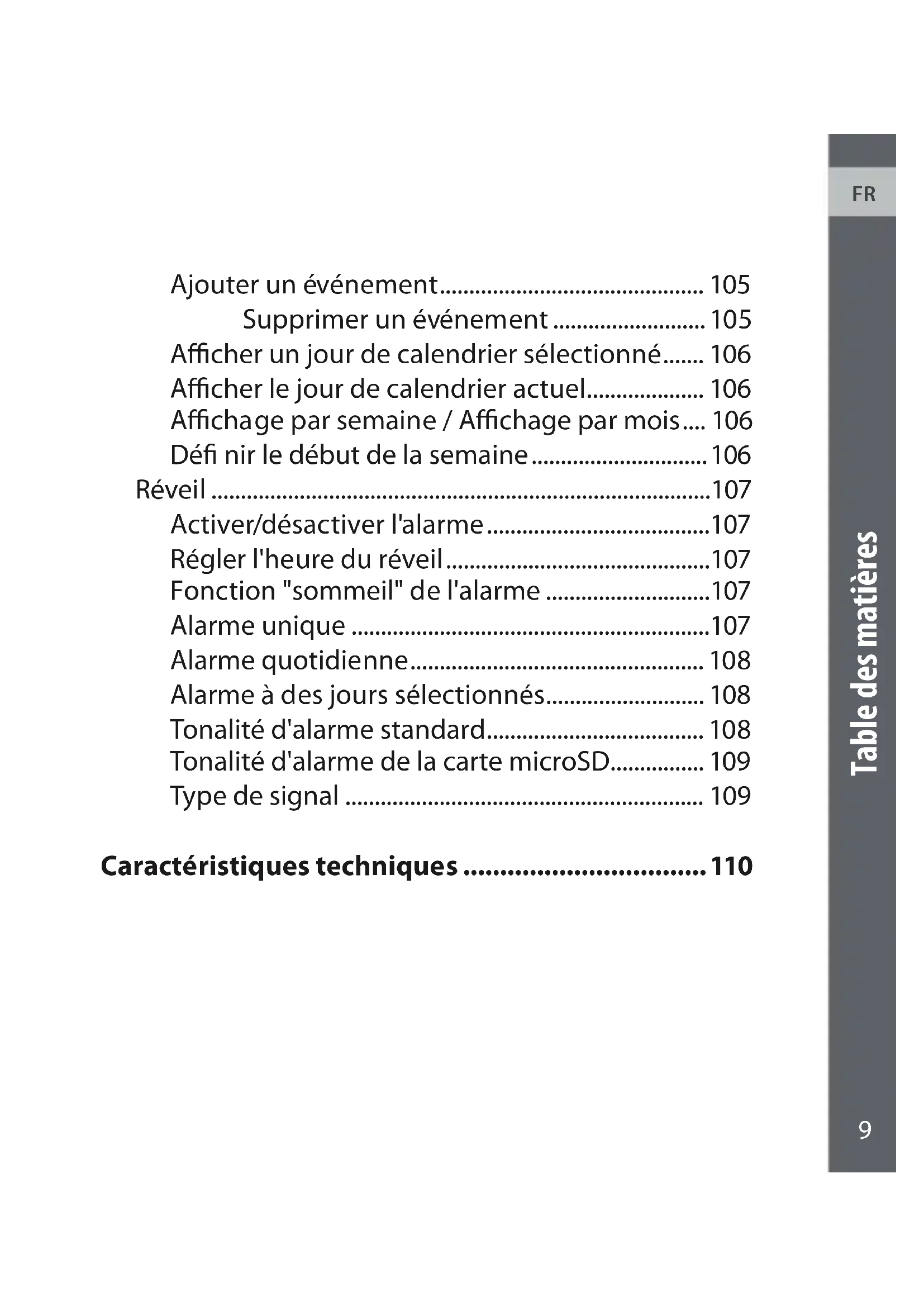 Fonction "sommeil" de l'alarme Menu principal → Outils → OK → Réveil → OK → Sélectionner une alarme → Modifier → Sommeil → Régler la durée de la fonction sommeil avec les touches [4] et [6] → Enregistrer