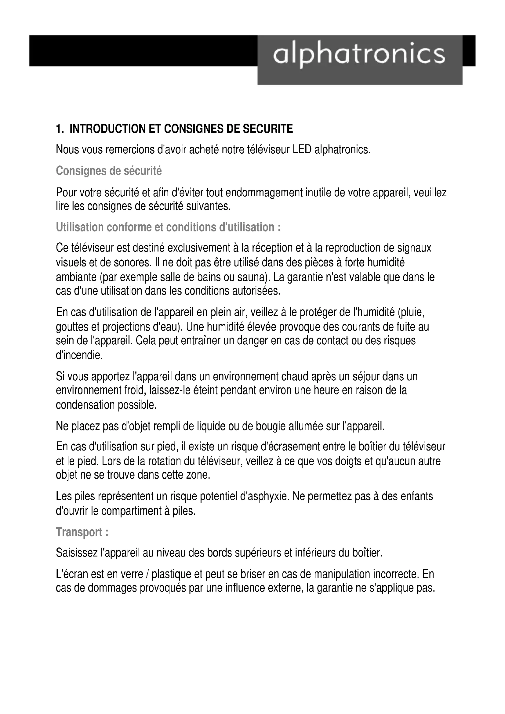 Nous vous remercions d'avoir acheté notre téléviseur LED alphatronics.