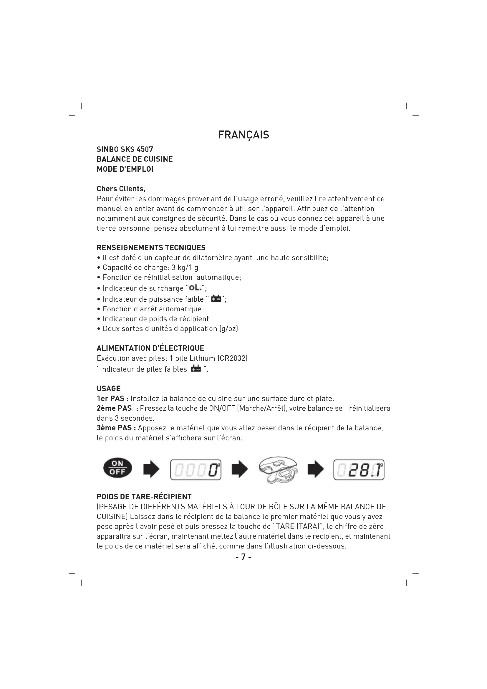 SKS 4507 - Balances de cuisine SINBO - Notice d'utilisation et mode d'emploi gratuit