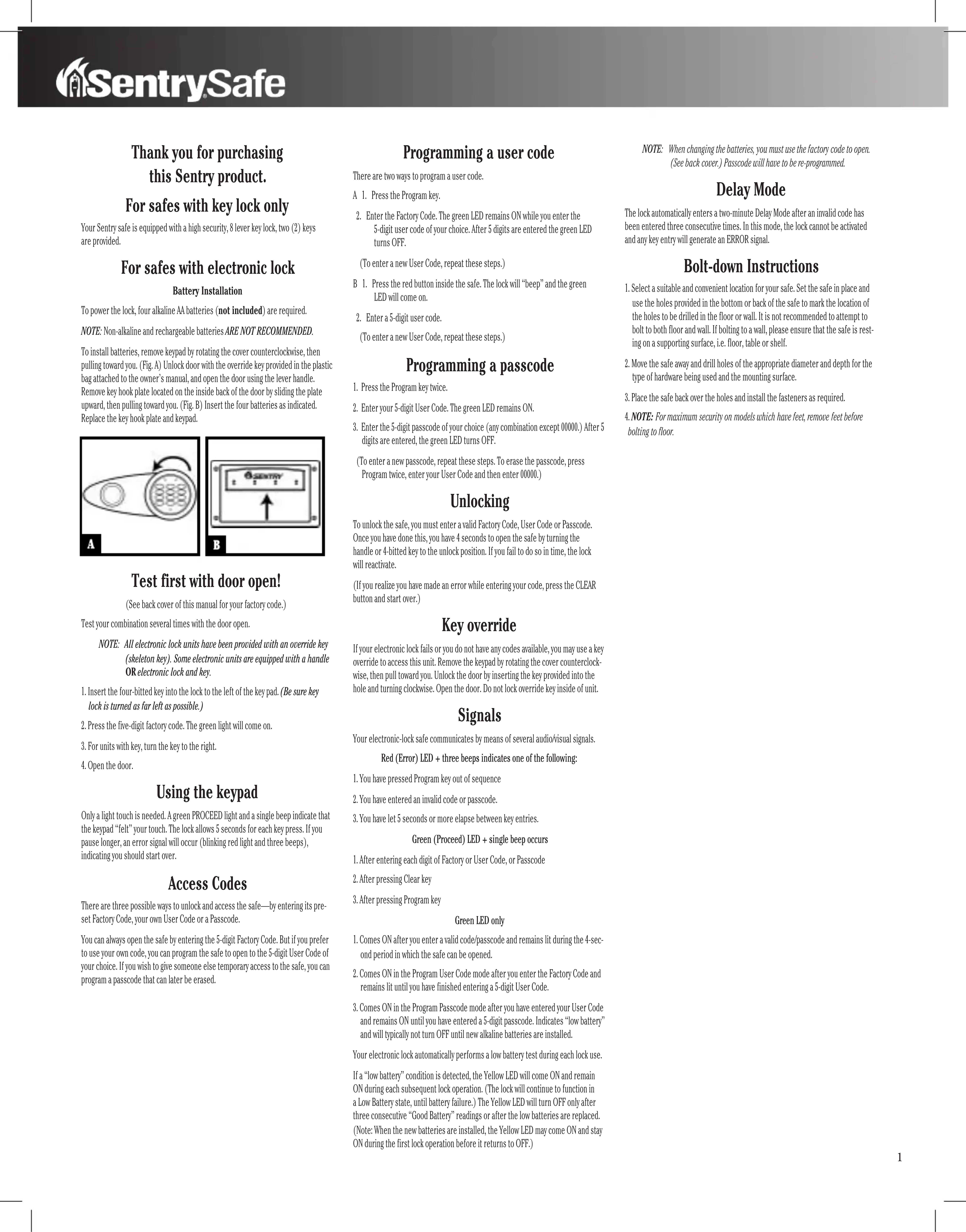 T6331 - Coffre-fort Sentry - Notice d'utilisation et mode d'emploi gratuit