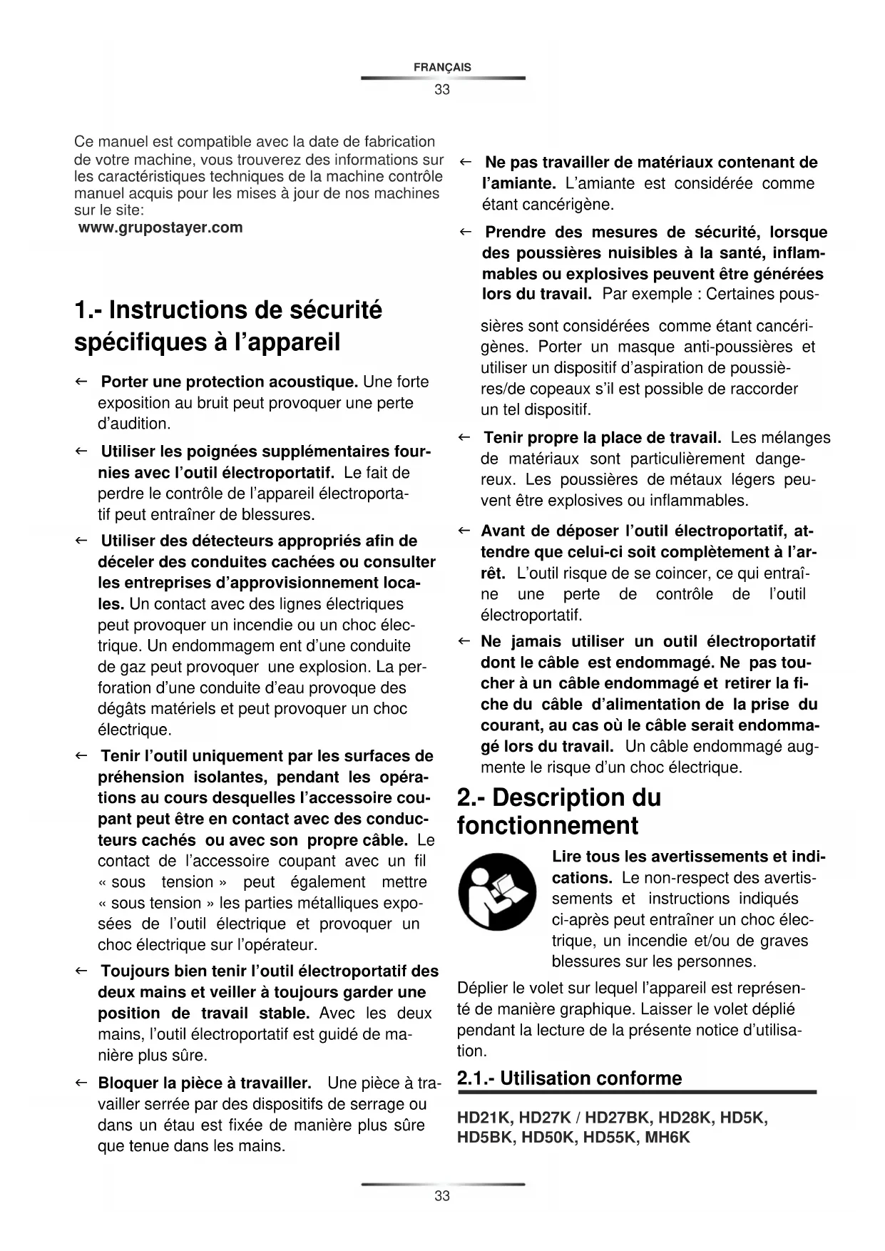 1.- Instructions de sécurité spécifiques à l'appareil