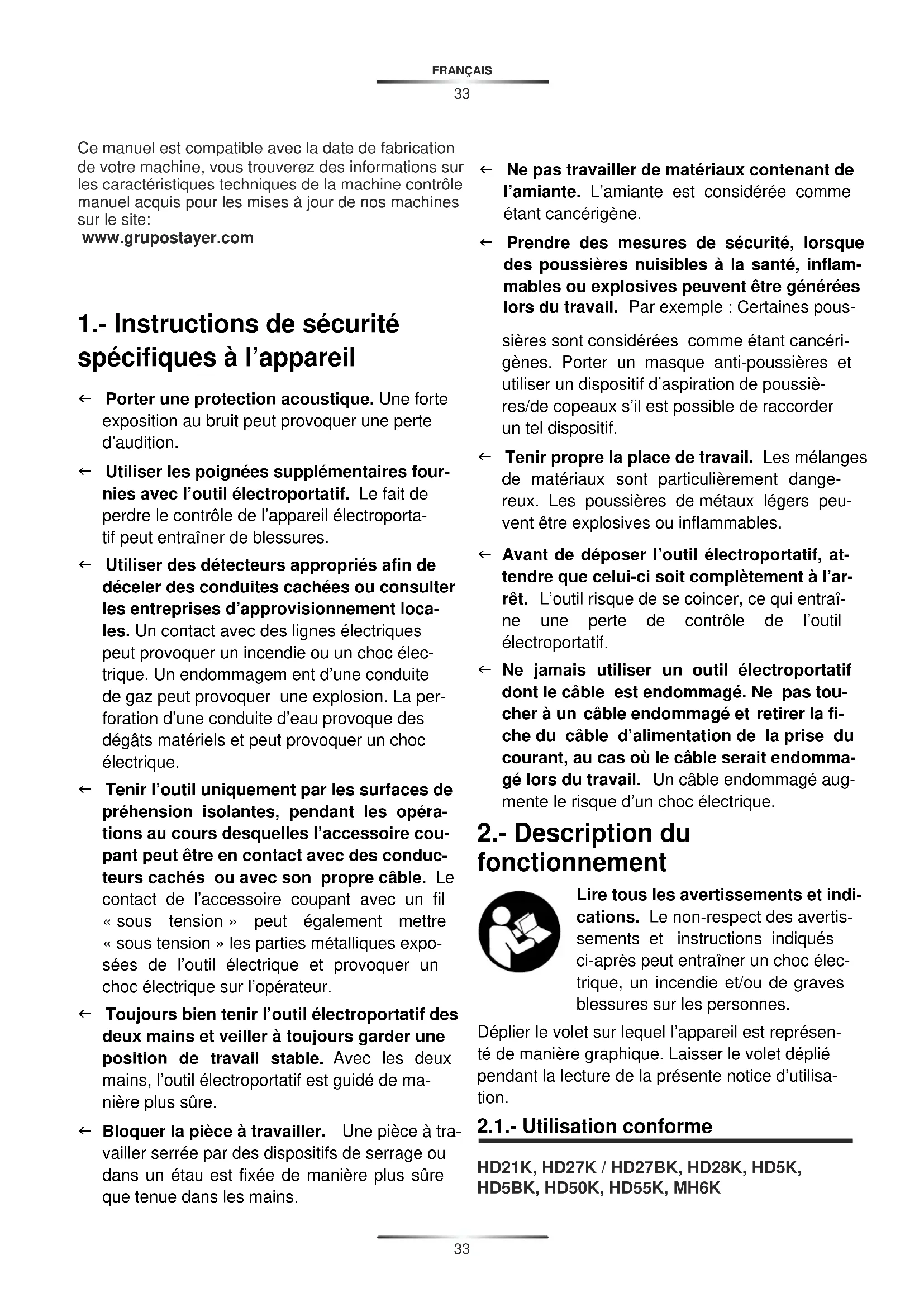 1.- Instructions de sécurité spécifiques à l'appareil