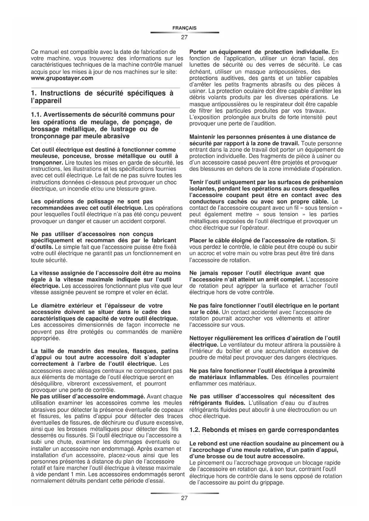 1.1. Avertissements de sécurité commons pour les opérations de meulage, de ponçage, de brossage métallique, de lustrage ou de tronçonnage par meule abrasive
