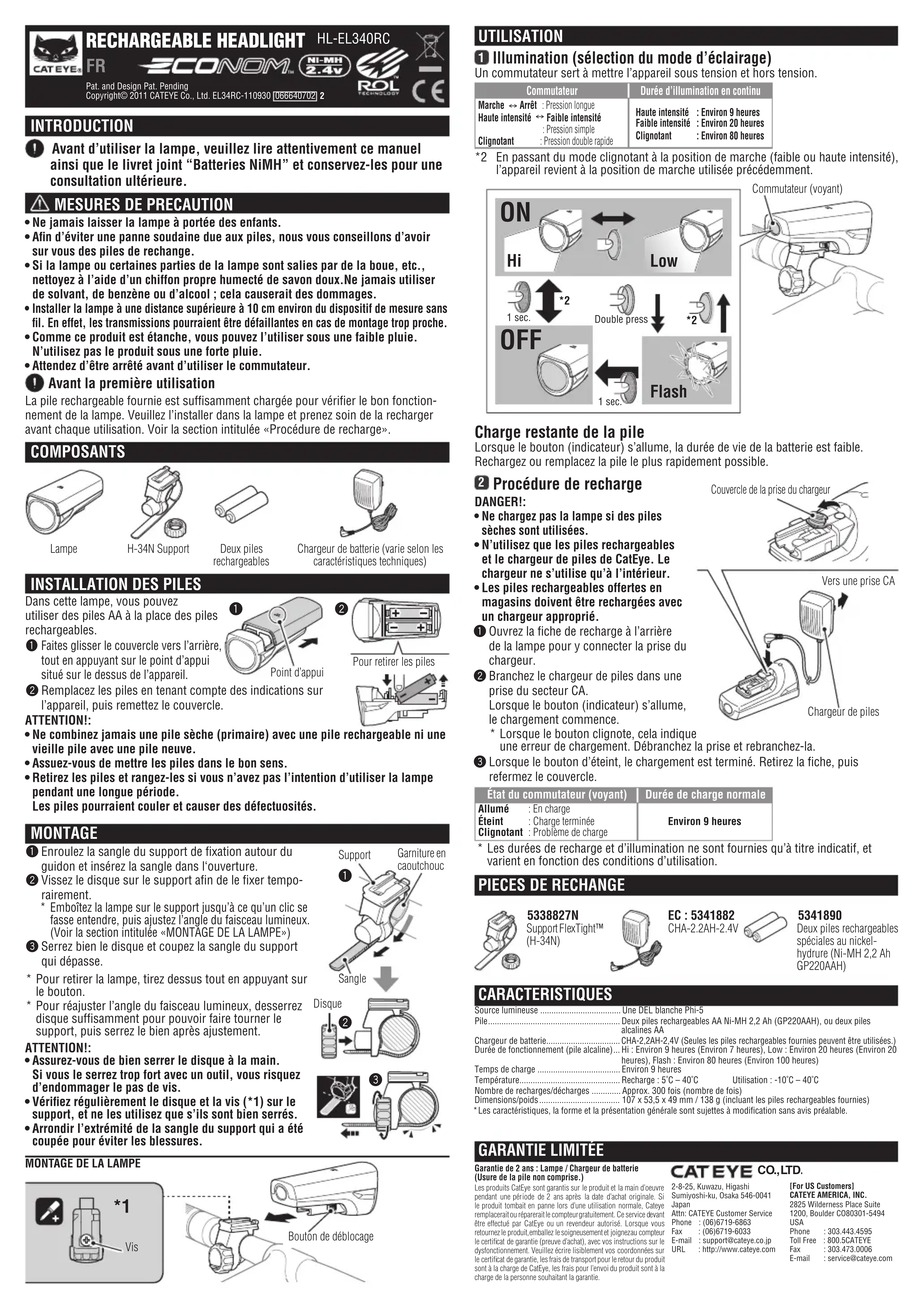 MODE D'EMPLOI Econom HLEL340RC CAT EYE