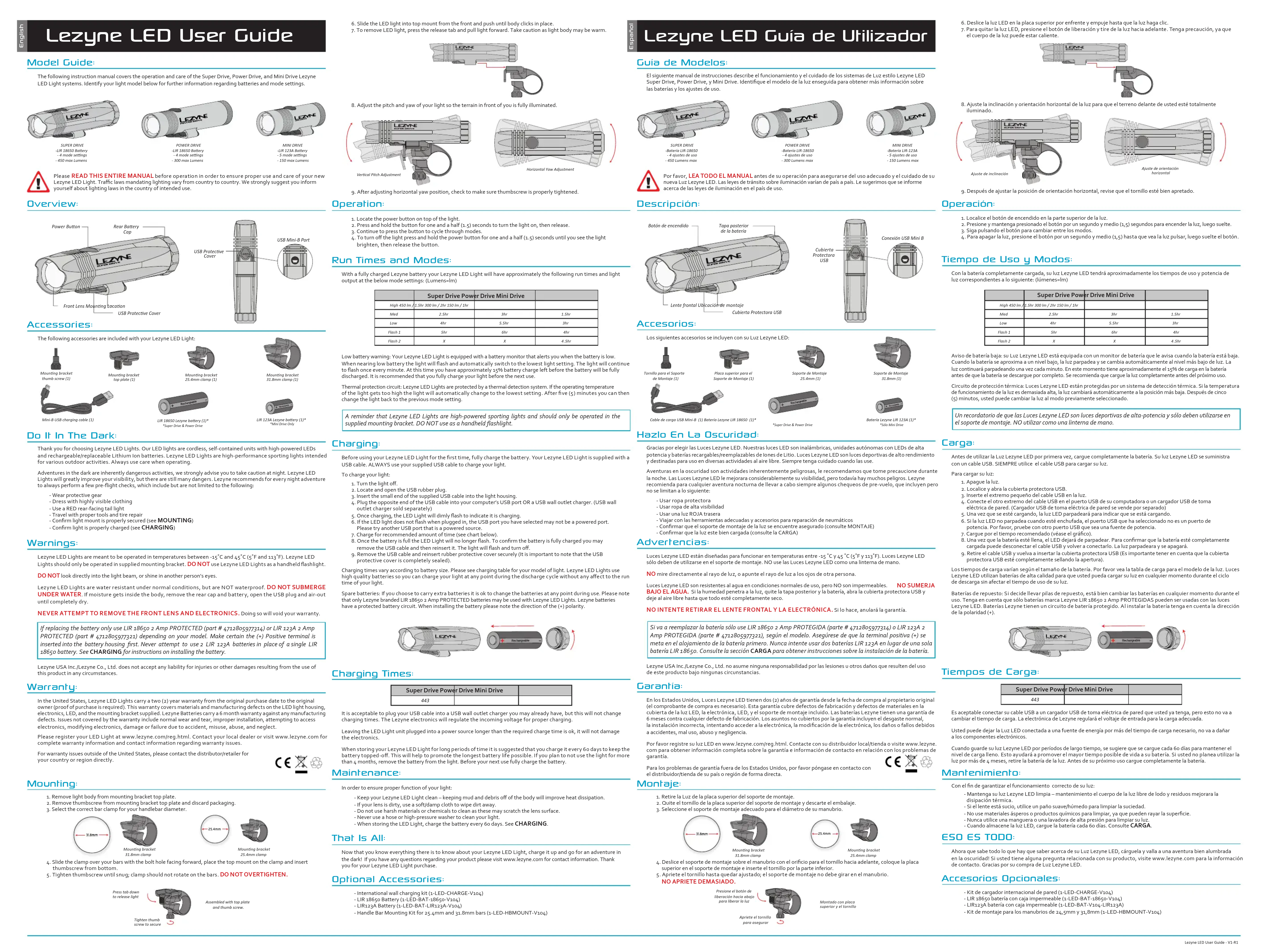 Nous nous rappelles que les lampes Lezyn LED sont des équipement sportifs puissant et ne doivent être utilisées qu'ence le support de fixation foumi. NE U'ILTILISSE PAS comme lampre torché.