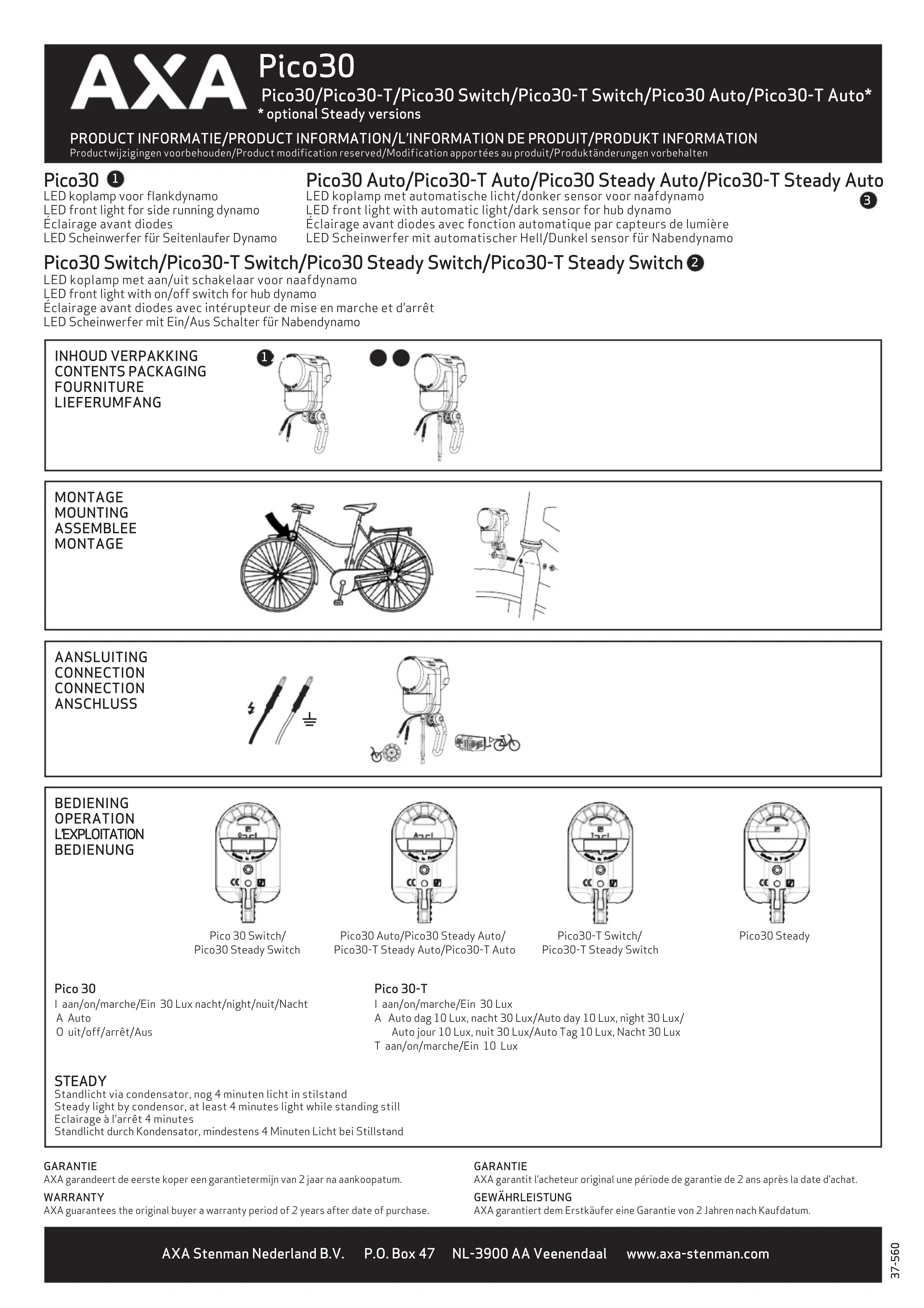 Pico30 - Lampe vélo AXA - Notice d'utilisation et mode d'emploi gratuit