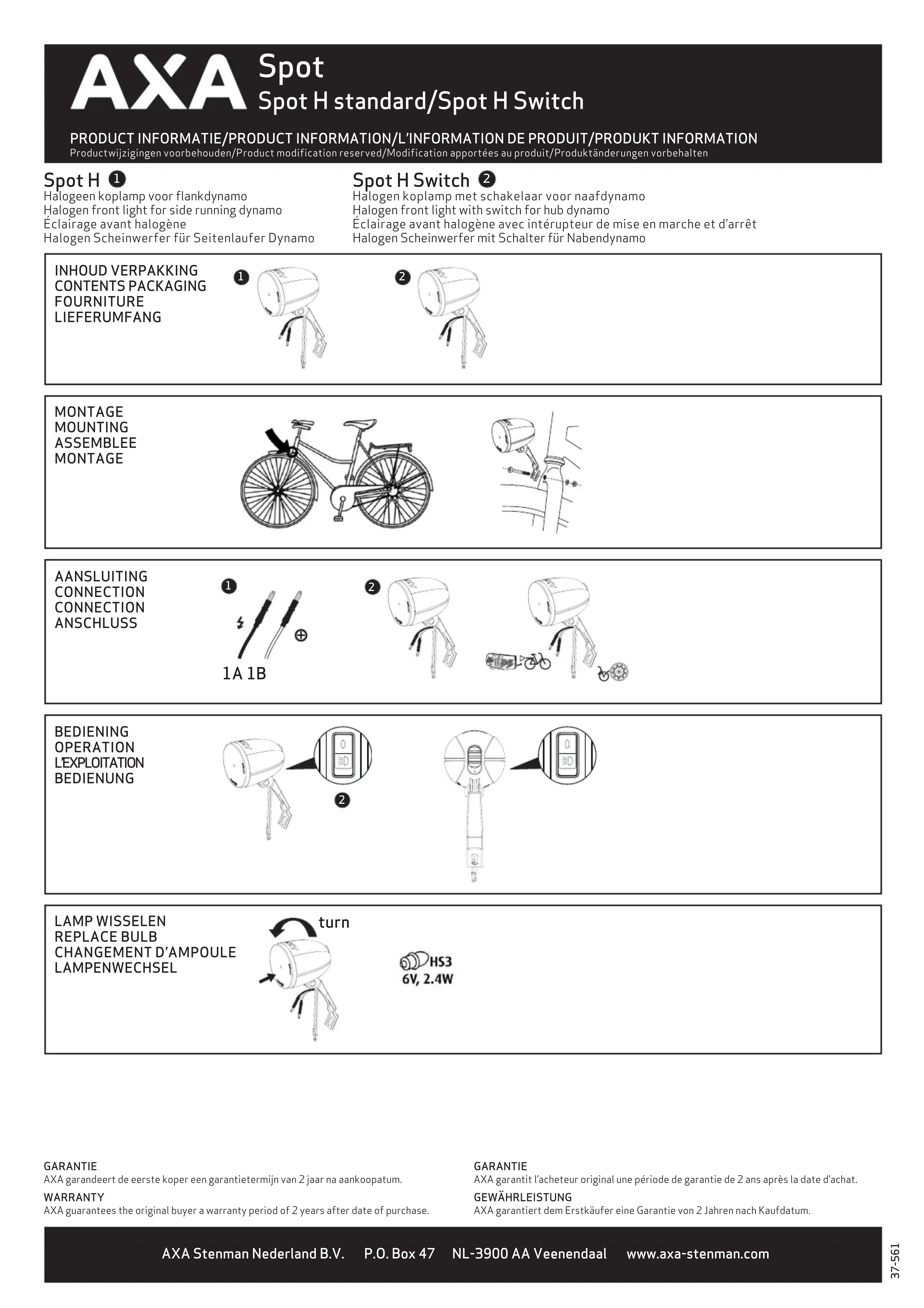 Spot - Lampe vélo AXA - Notice d'utilisation et mode d'emploi gratuit