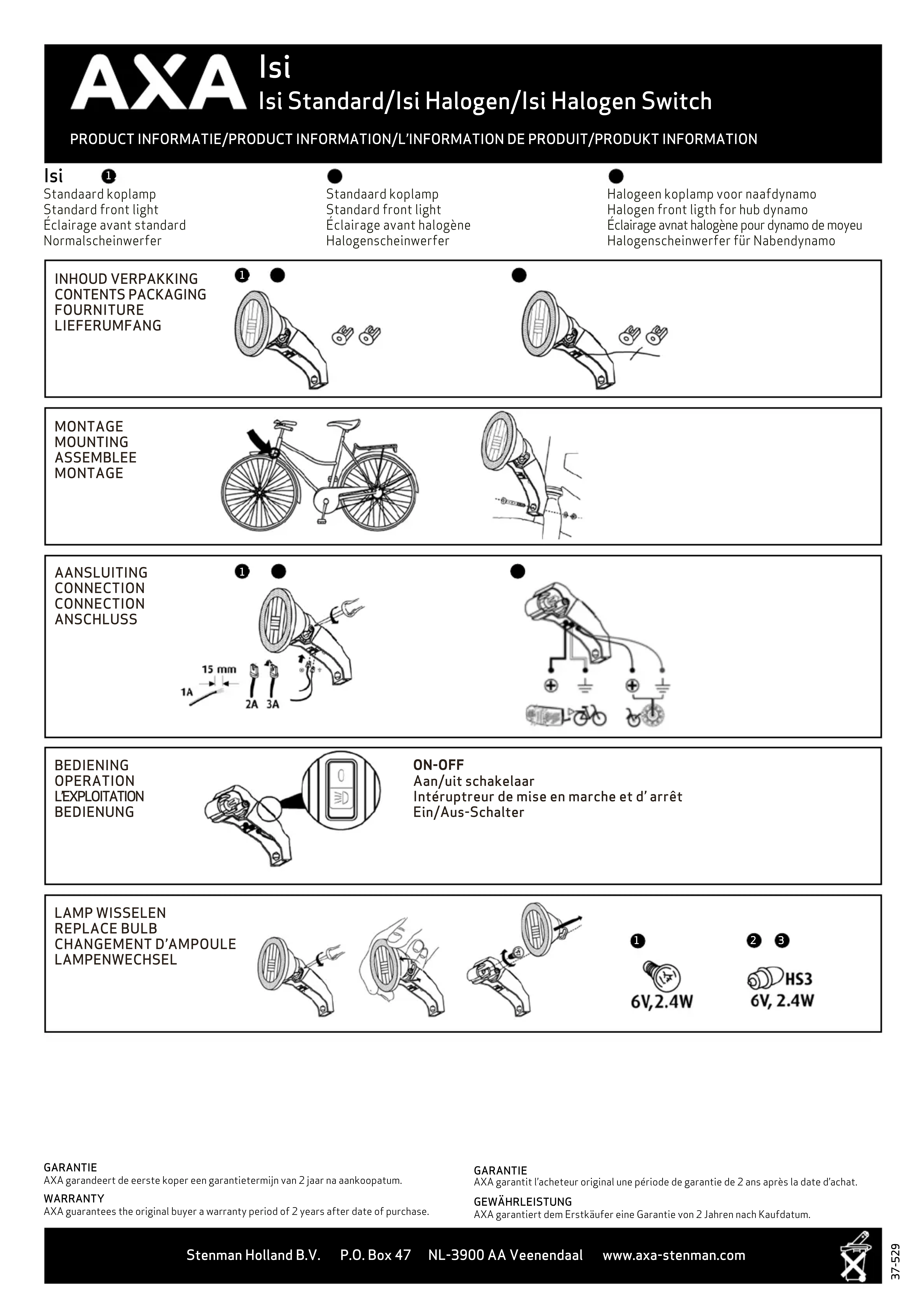 Isi - Lampe vélo AXA - Notice d'utilisation et mode d'emploi gratuit