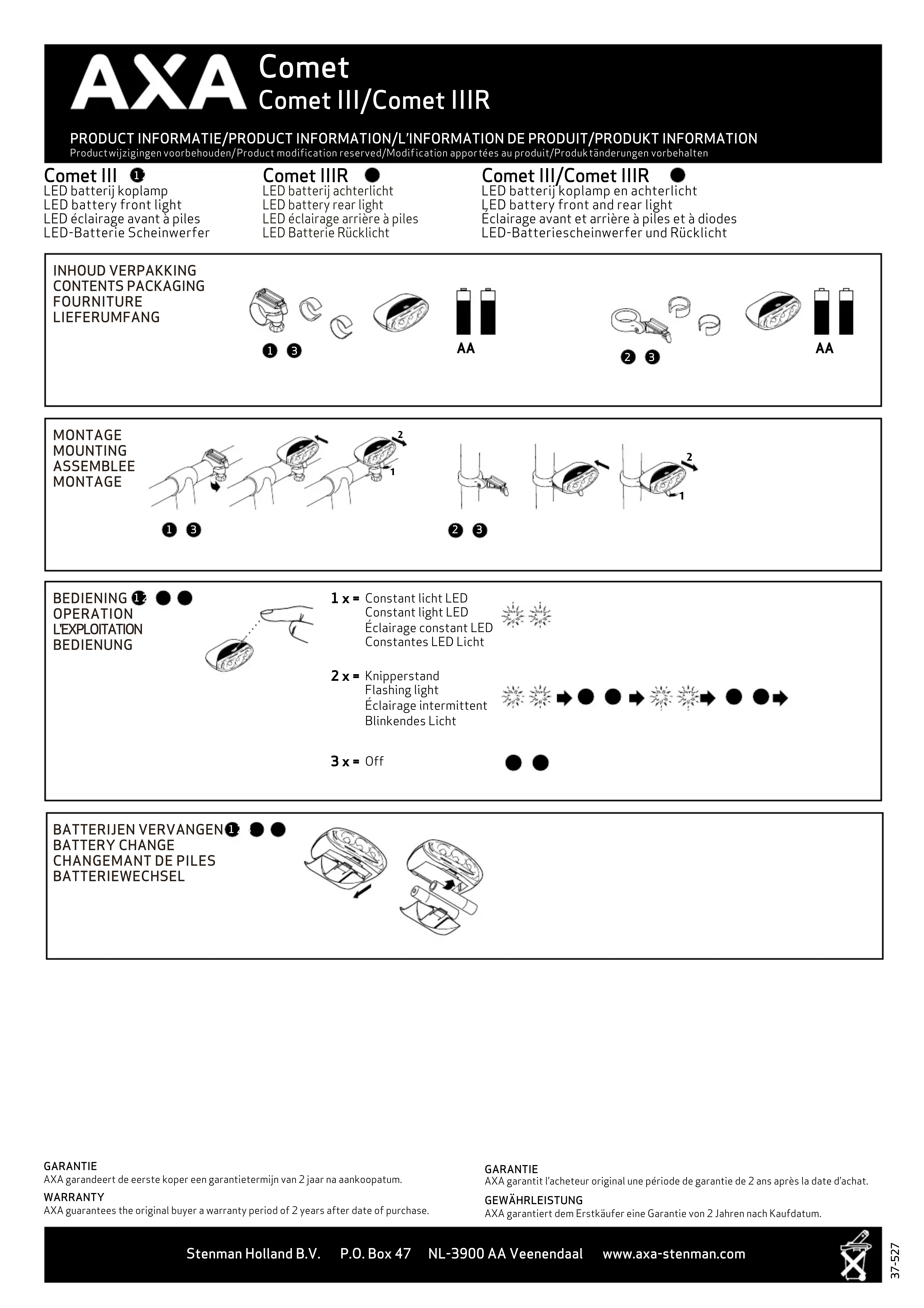Comet IIIR - Lampe vélo AXA - Notice d'utilisation et mode d'emploi gratuit
