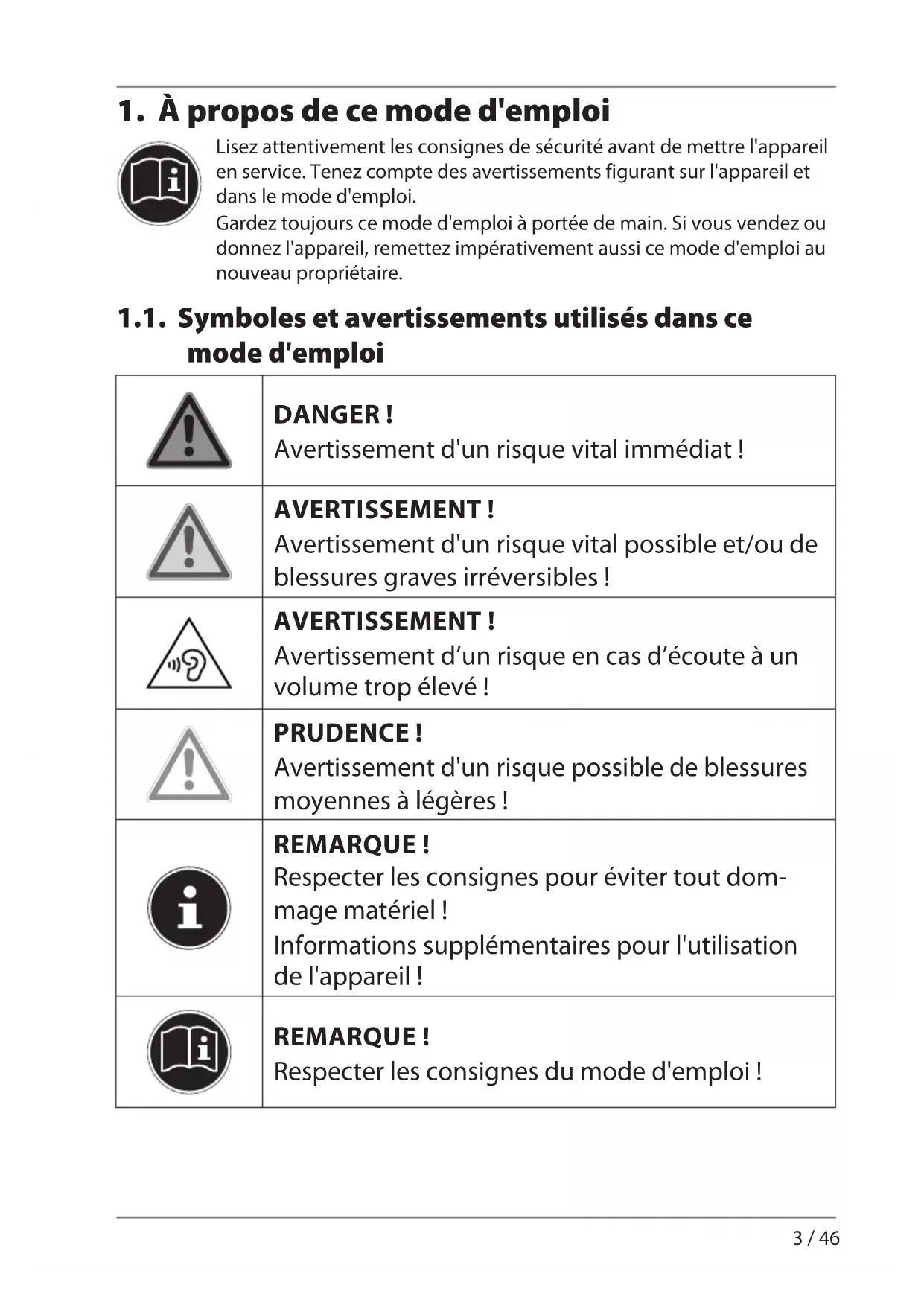 - 1.1. Symboles et avertissements utilisés dans ce mode d'emploi p. 3