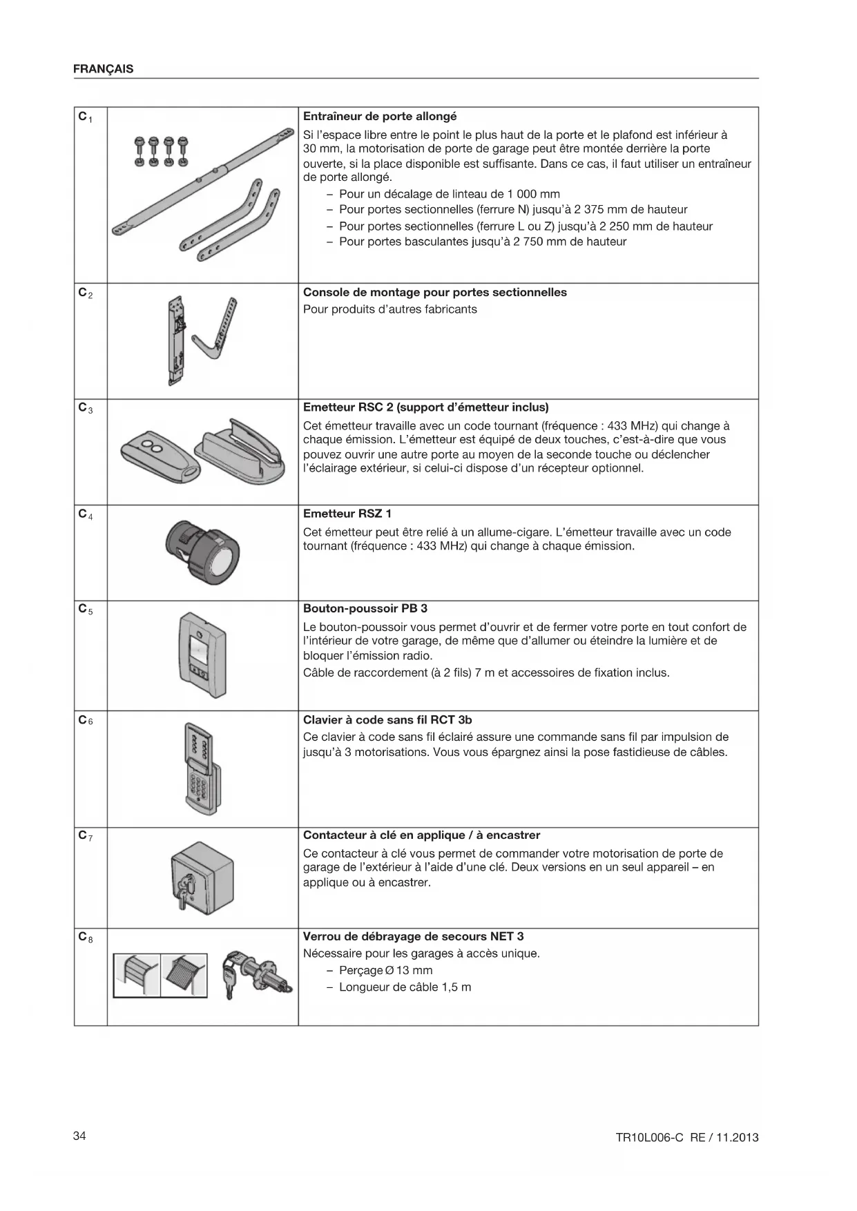 - C Accessoires pour la motorisation de porte de garage p. 34