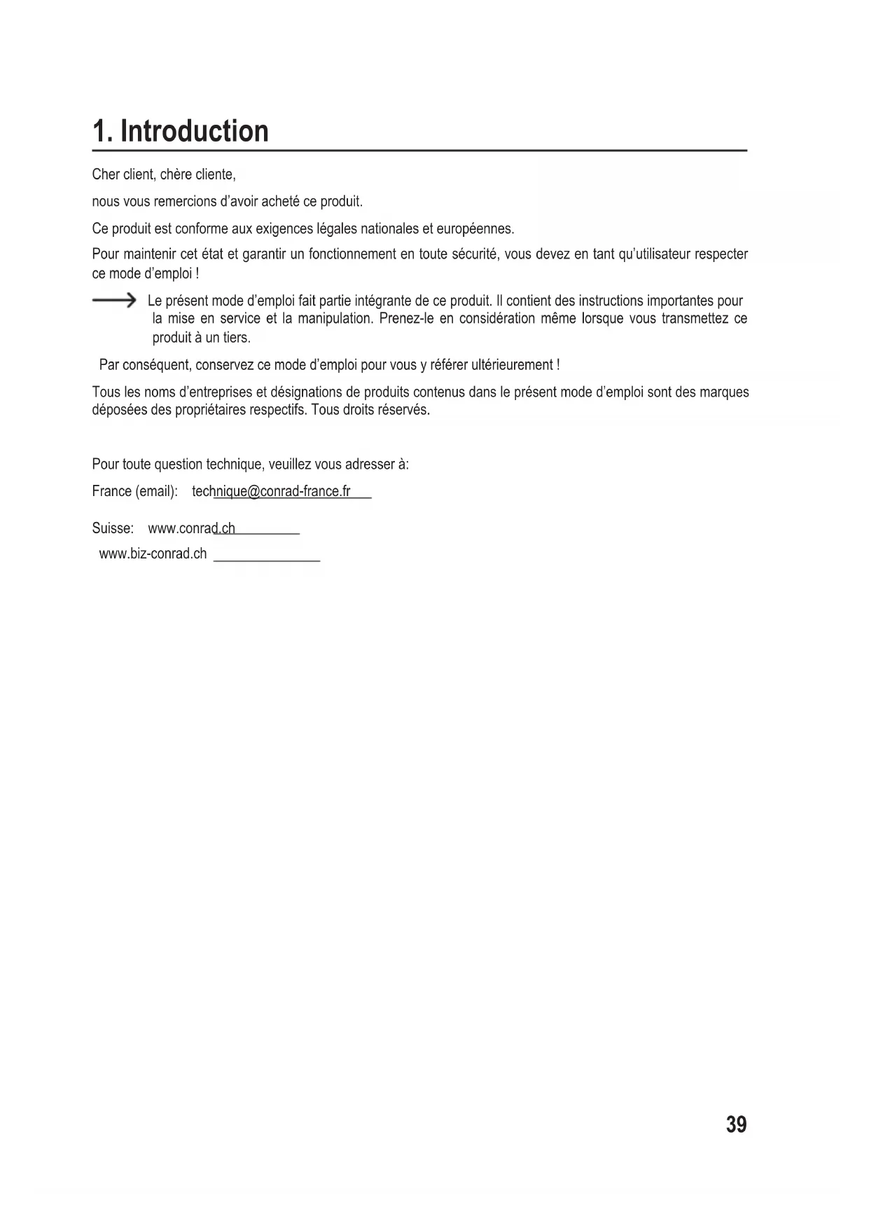 Le présent mode d'emploi fait partie intégrante de ce produit. Il contient des instructions importantes pour la mise en service et la manipulation. Prenez-le en considération même lorsque vous le transmettez à un tiers.