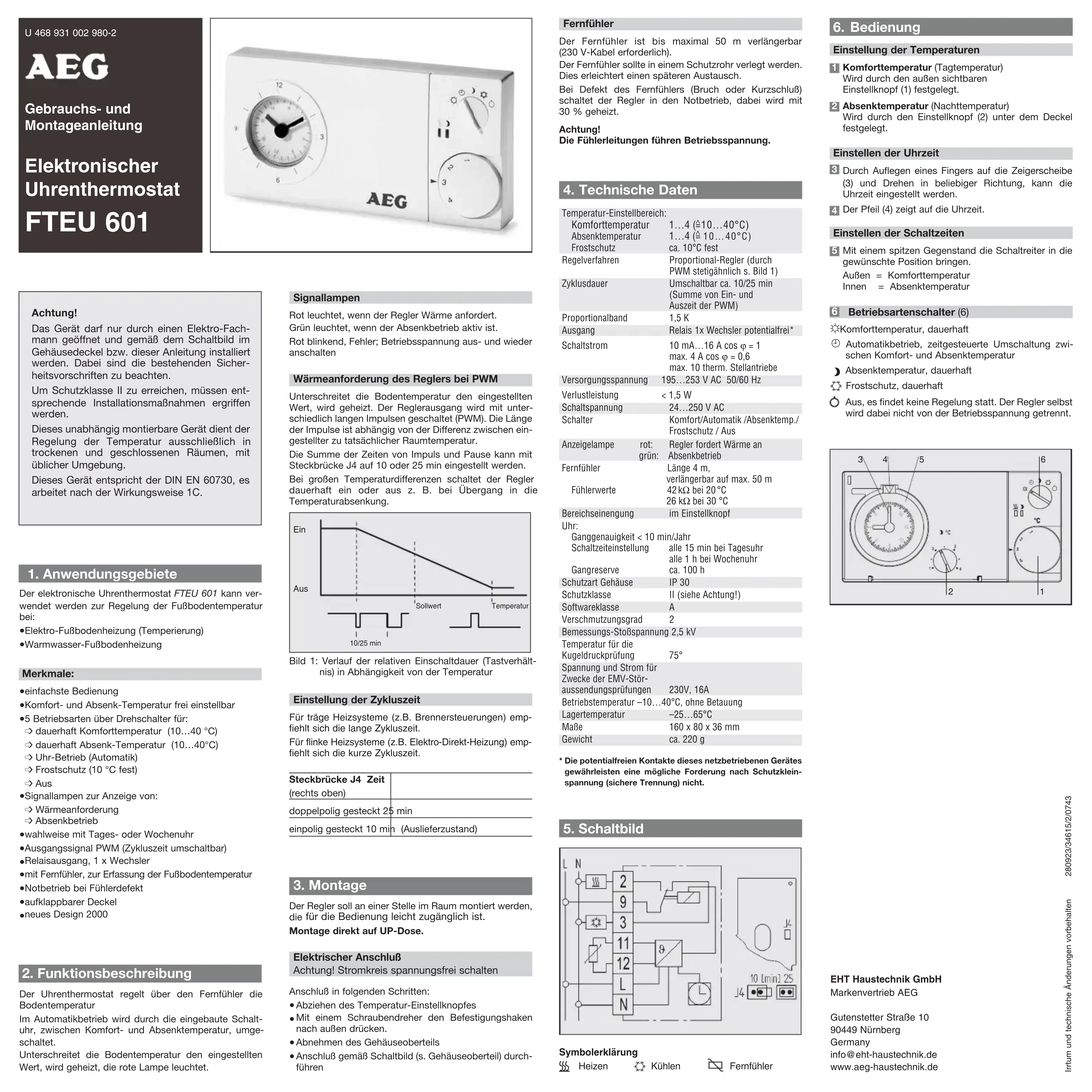 FTEU 601 - Thermostat AEG - Notice d'utilisation et mode d'emploi gratuit