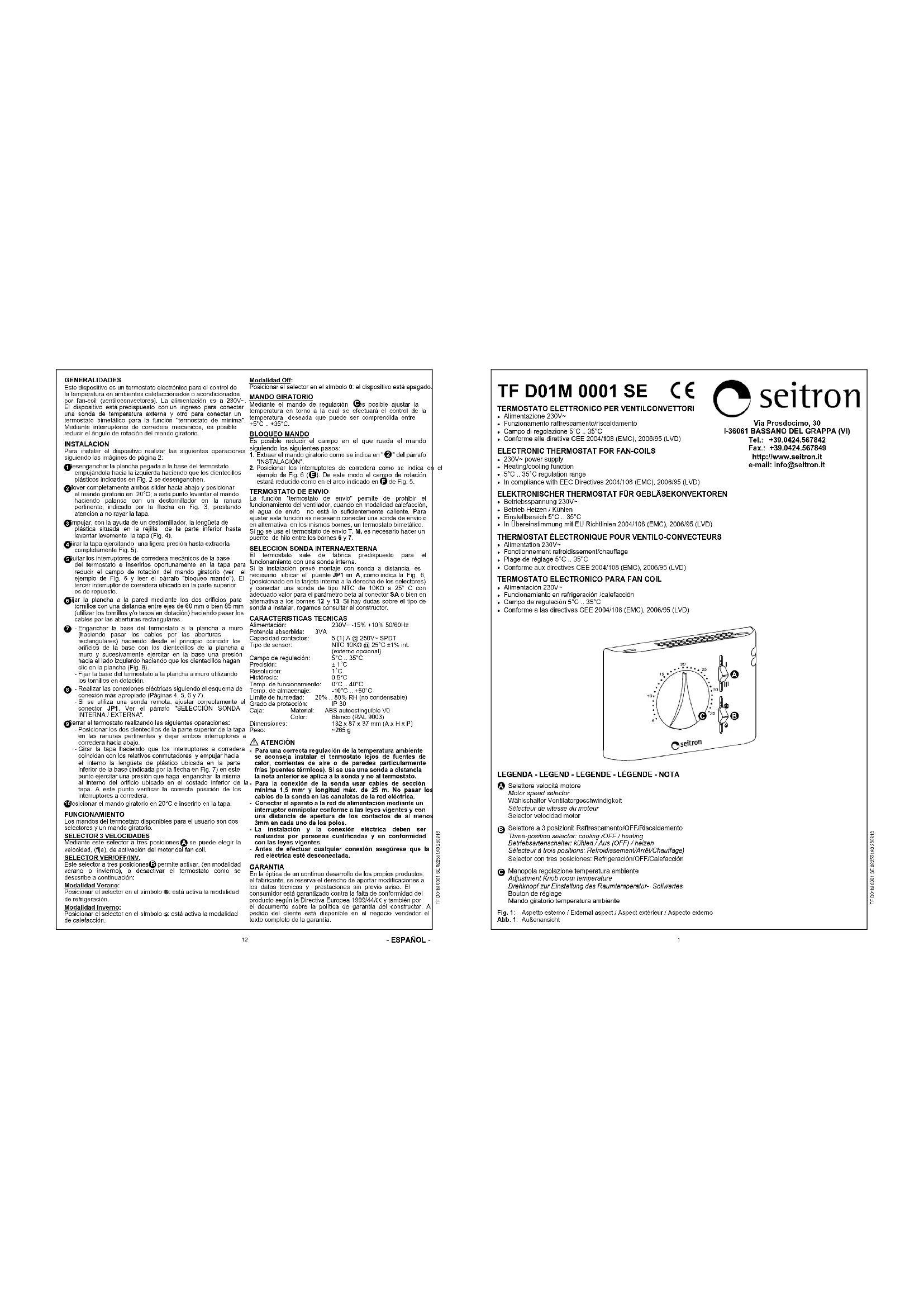 TFD01M0001SE - Thermostat Seitron - Notice d'utilisation et mode d'emploi gratuit