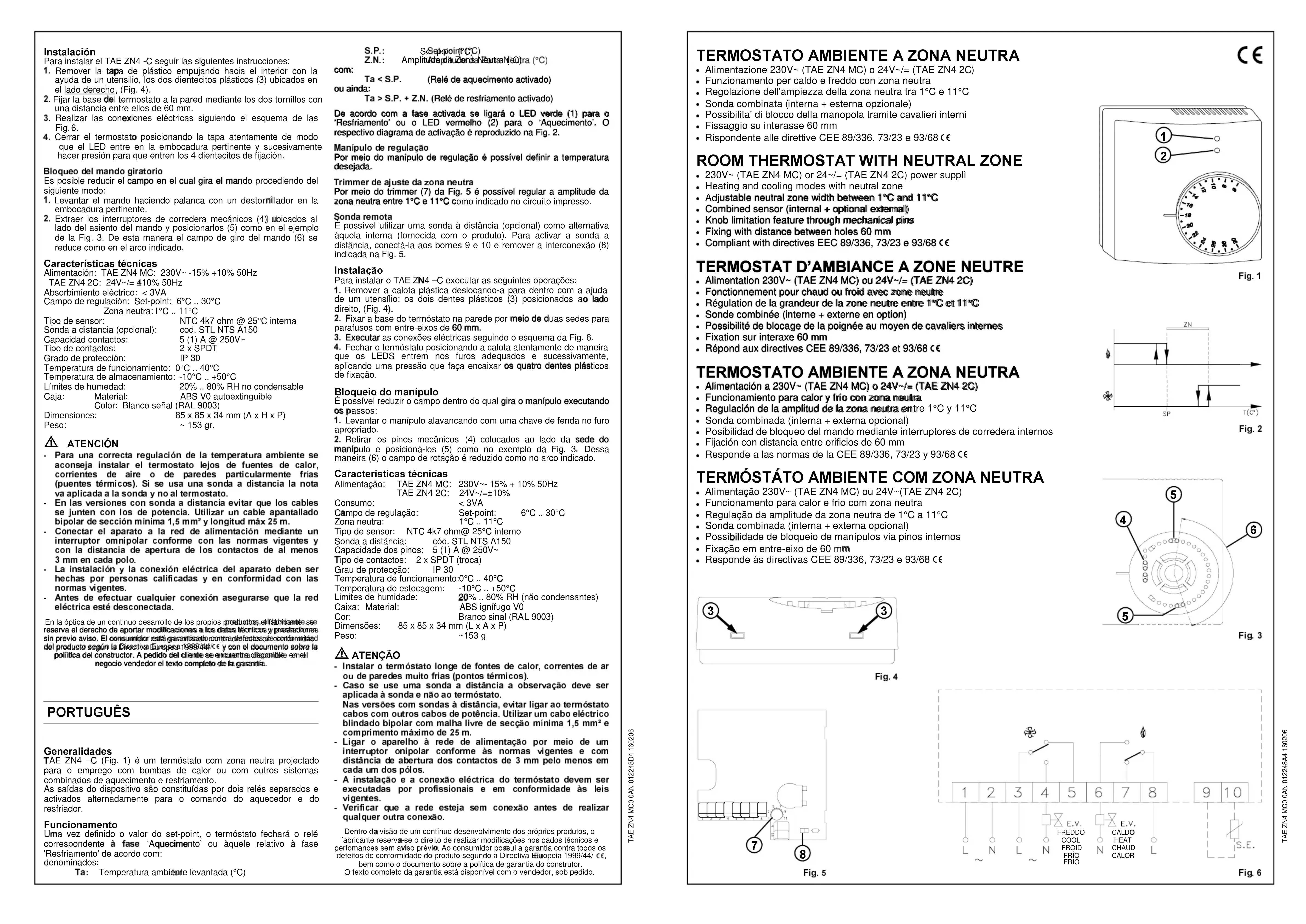 Le TAE ZN4 -C (Fig. 1) est un thermostat à zone neutre conçu pour l'utilisation avec une pompe à chaleur ou avec d'autres systèmes combinés de chauffage et de conditionnement. Les sorties du dispositif sont constituées de deux relais en échange, séparés pour la commande du chauffage et du refroidisseur.