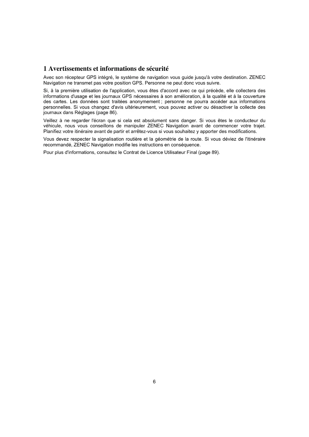 - Merci d'avoir choisi ZENEC C9 comme navigateur. Commencez à utiliser ZENEC C9. Ce document est la description détaillée du logiciel de navigation. Vous pouvez aisément découvrir ZENEC Navigation tout en l'utilisant. Nous vous conseillons toutefois de lire ce manuel pour vous familiariser avec les écrans et les fonctions.3 Table des matières 1 Avertissements et informations de sécurité p. 6