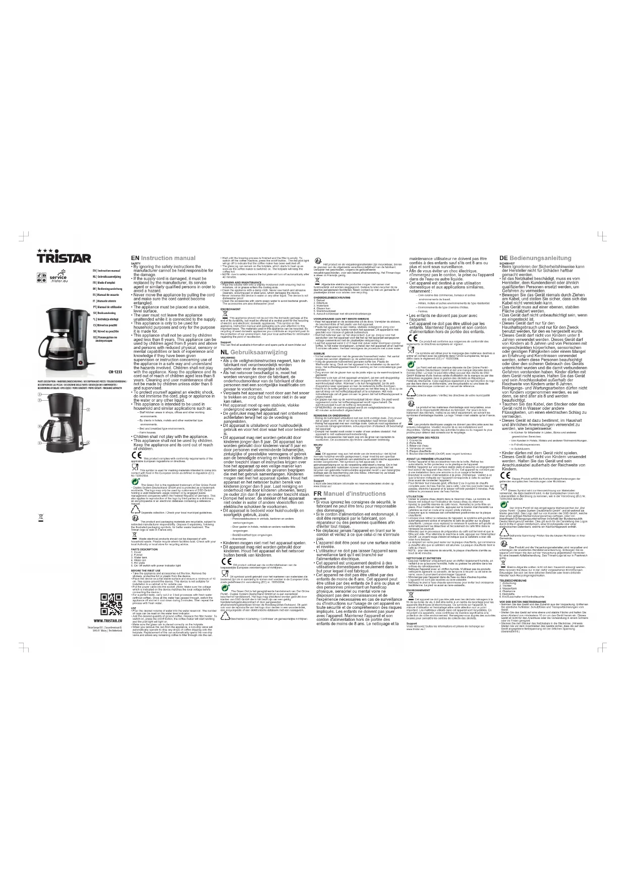 CM1233 - Machine à café TRISTAR - Notice d'utilisation et mode d'emploi gratuit