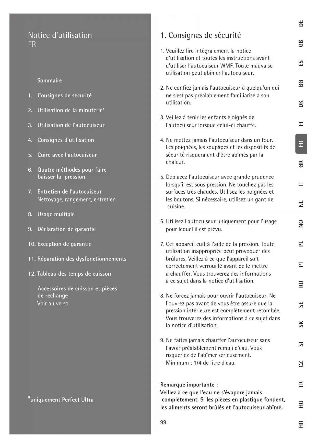 - Veuillez lore integralement la notice d'utilisation et toutes les instructions avant d'utiliser l'autocuiseur WMF. Toute mauvaise utilisation peut abimer l'autocuiseur.