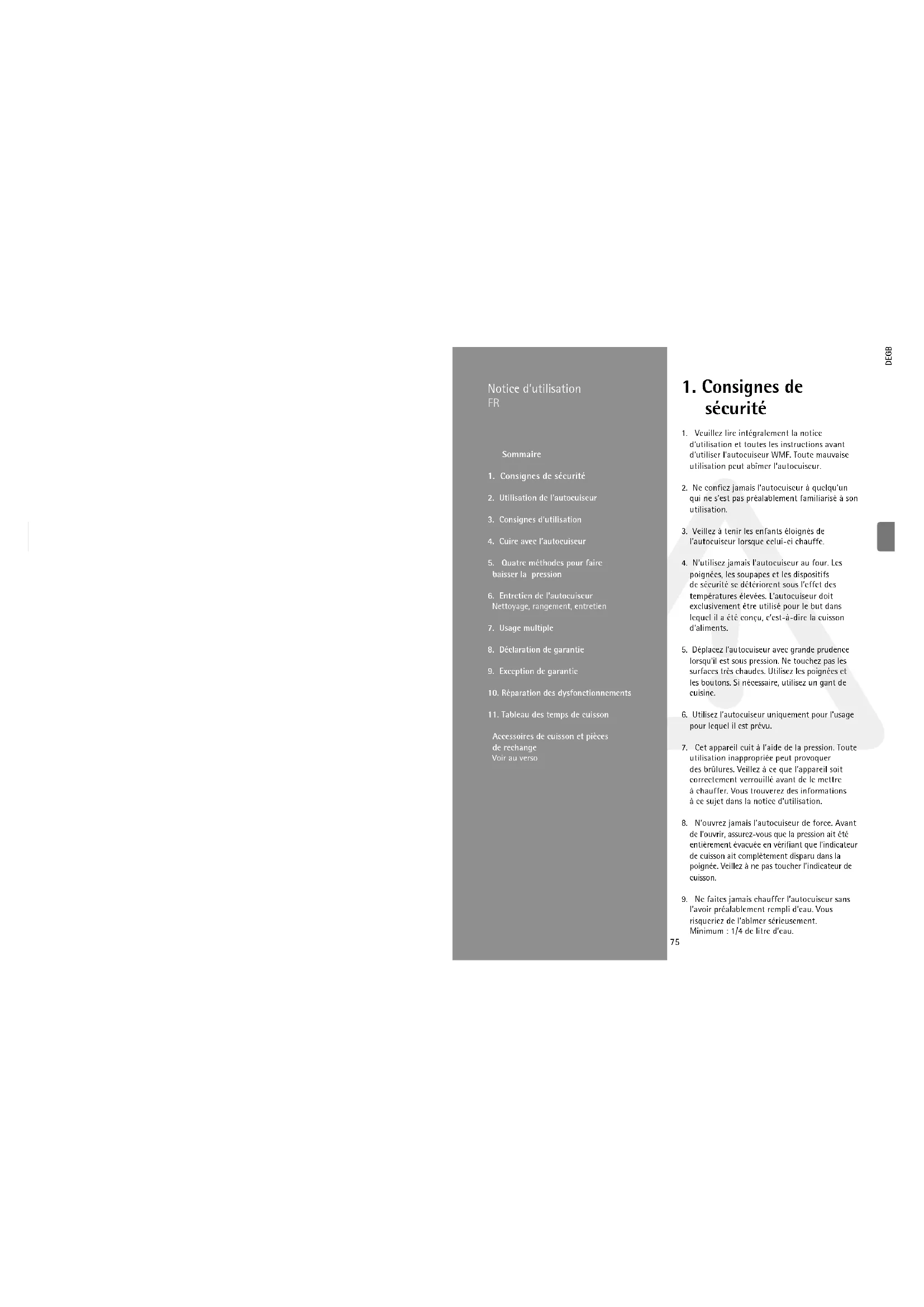 - Veuillez lire intégralement la notice d'utilisation et toutes les instructions avant d'utiliser l'autocuiseur WMF. Toute mauvaise utilisation peut abîmer l'autocuiseur.