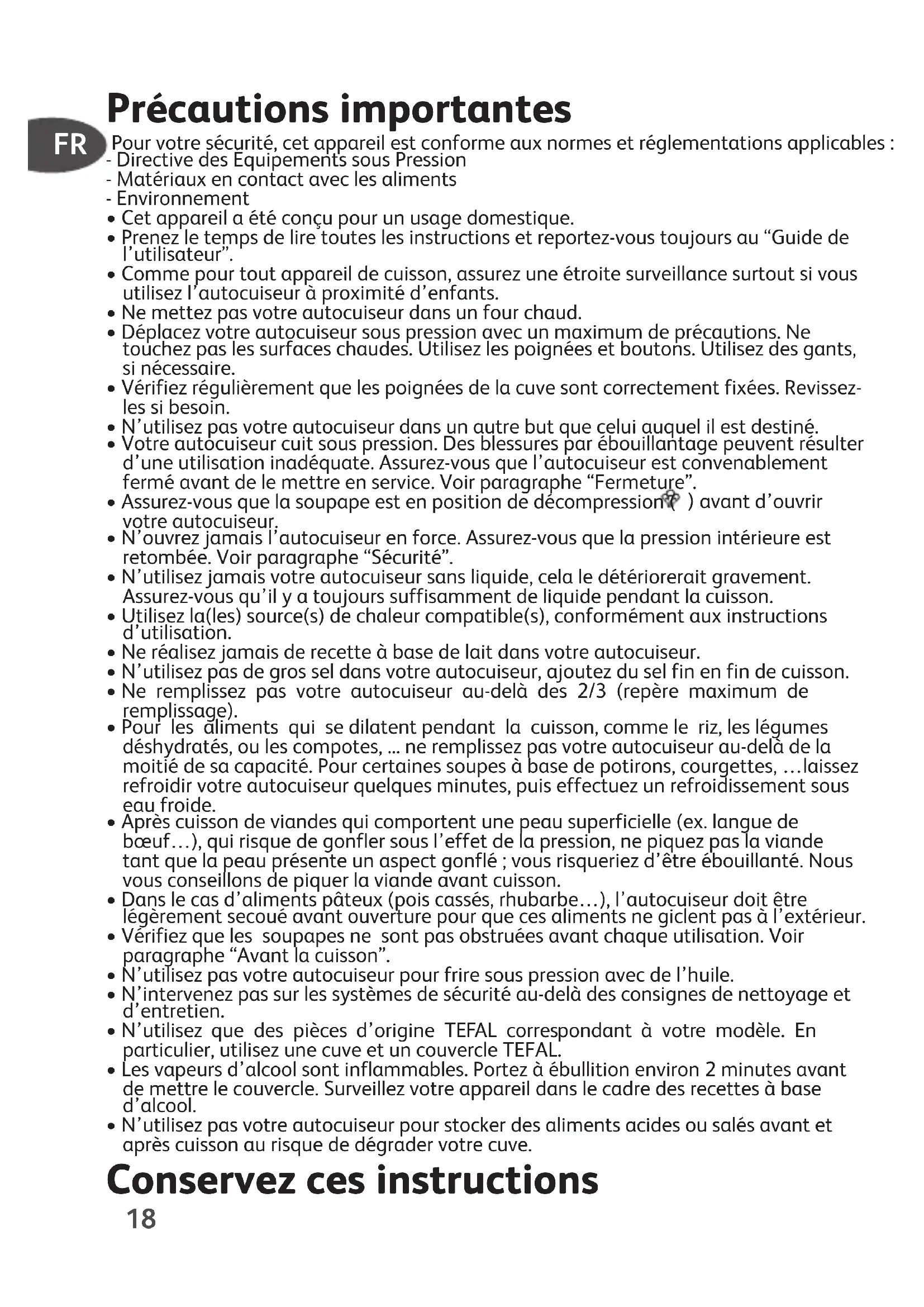 - N’utilisez pas votre autocuiseur pour frire sous pression avec de l’huile.