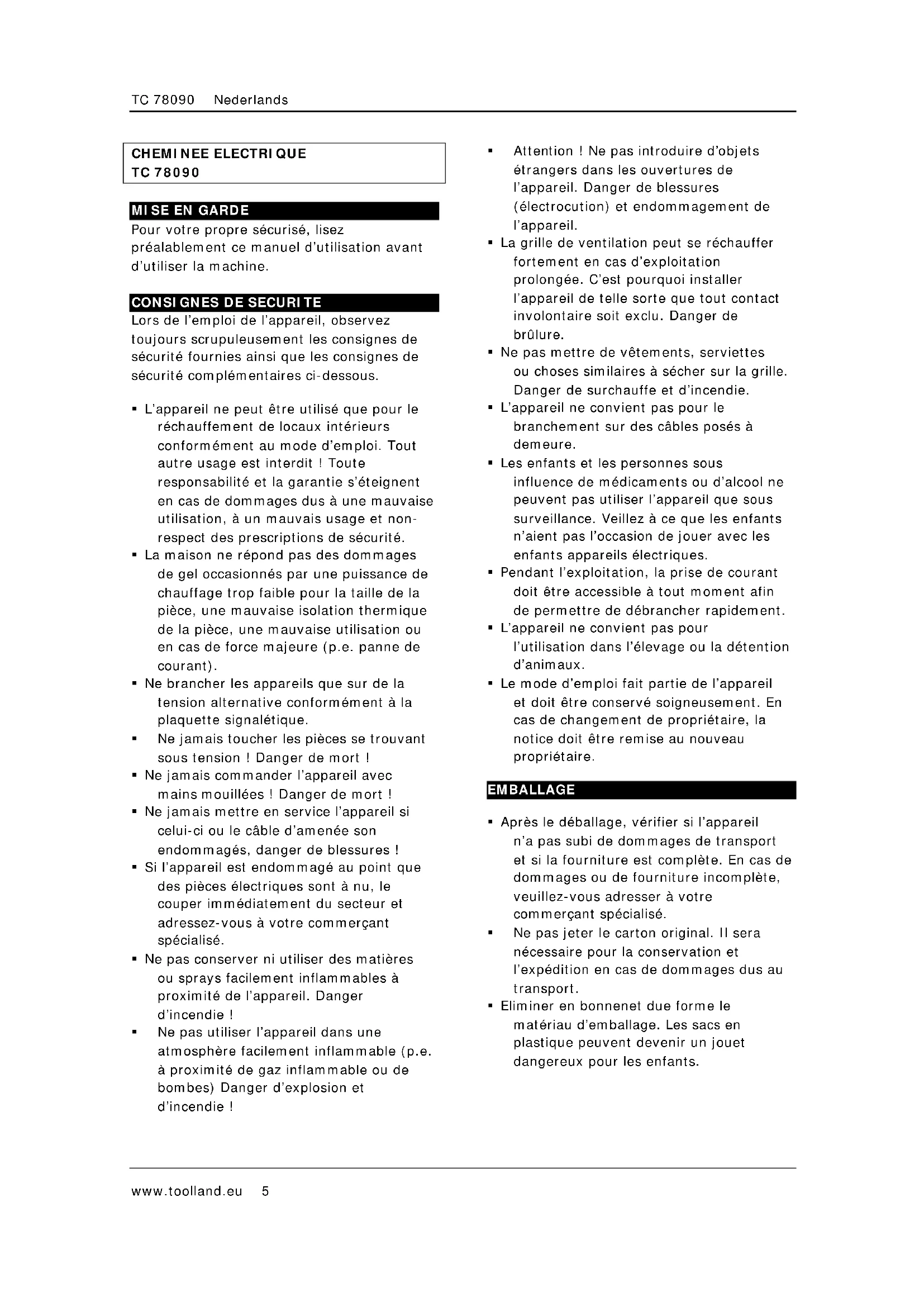 TC78090 - Cheminée Toolland - Notice d'utilisation et mode d'emploi gratuit