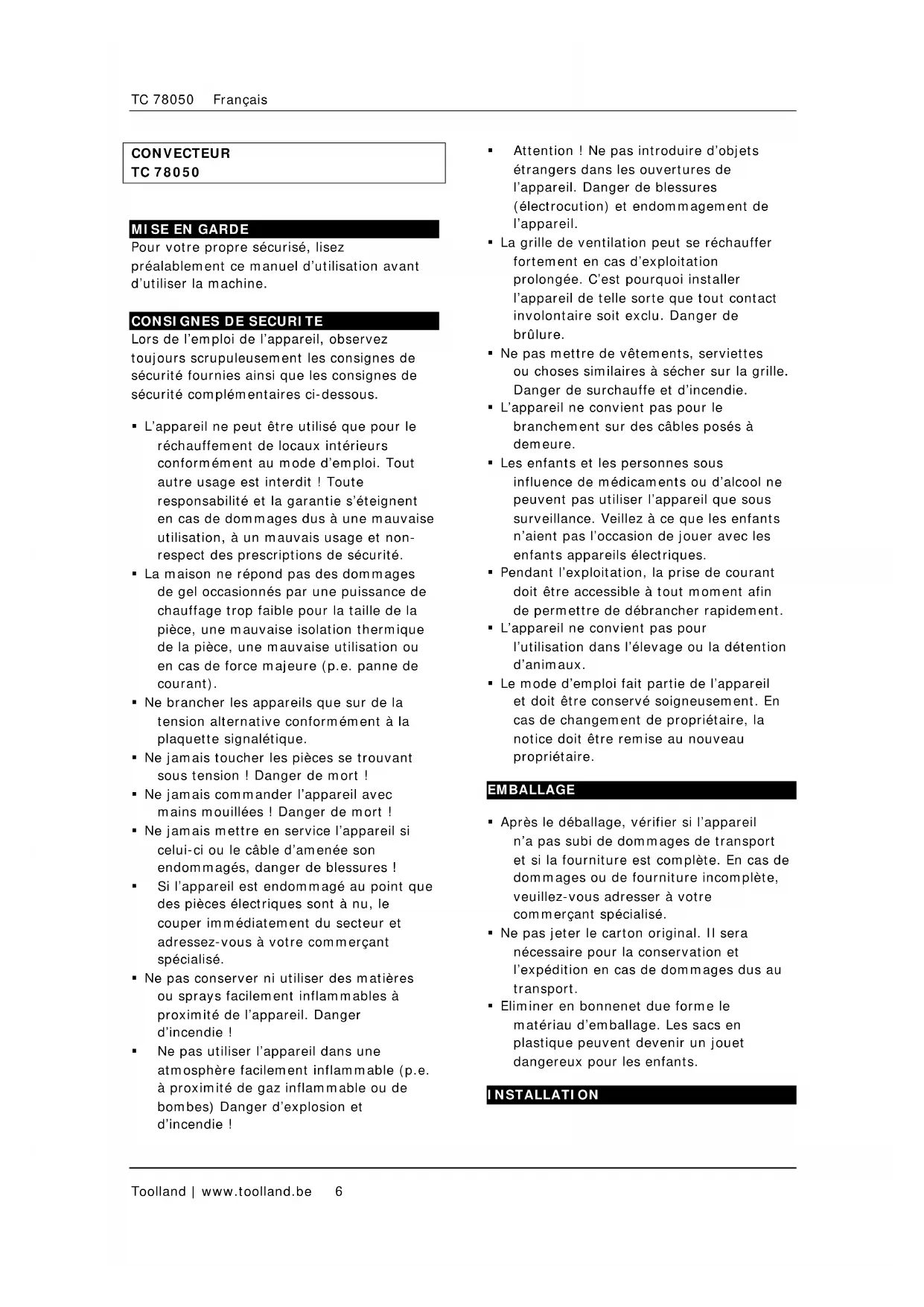 TC78050 - Chauffage Toolland - Notice d'utilisation et mode d'emploi gratuit