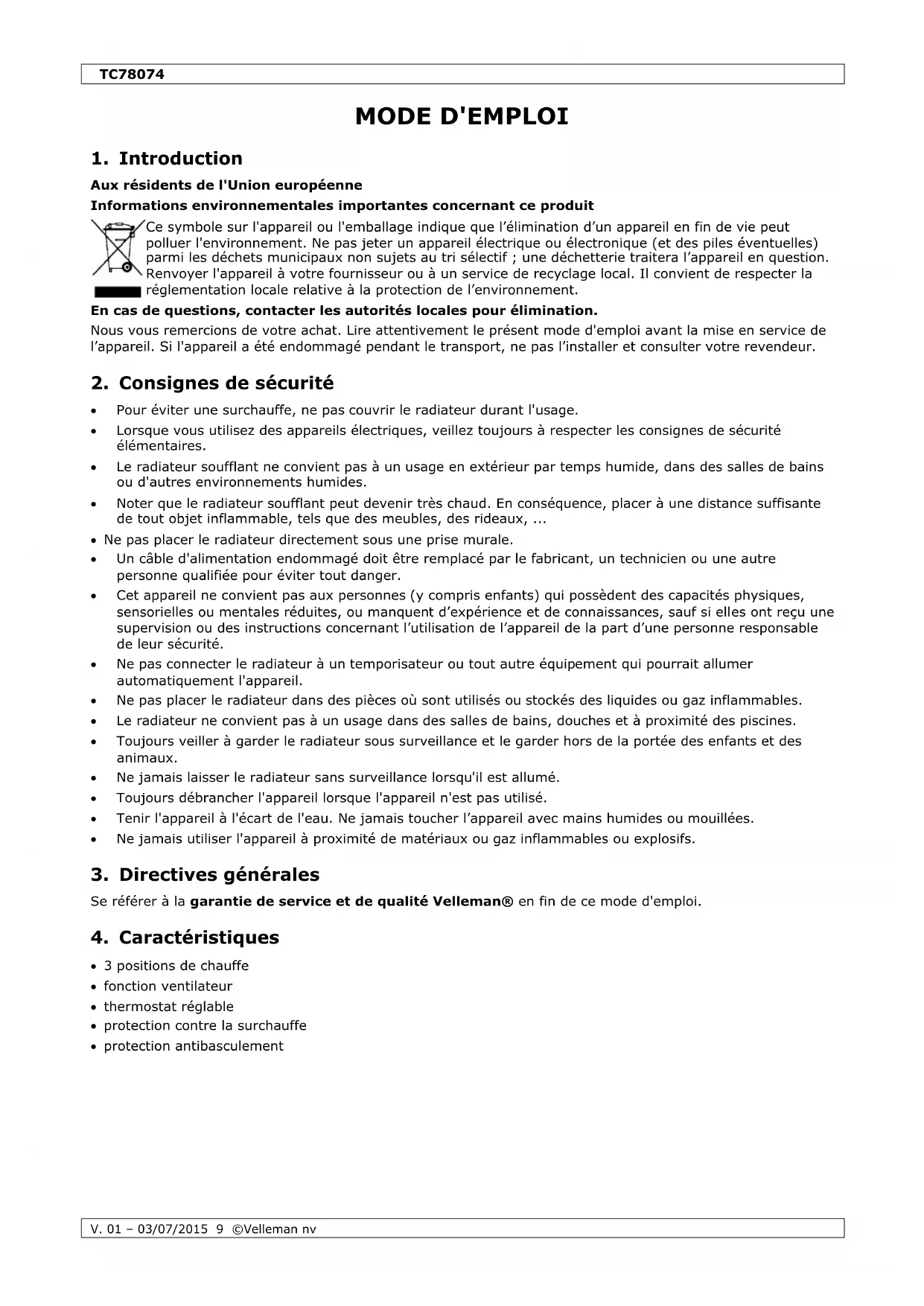 Se référer à la garantie de service et de qualité Velleman® en fin de ce mode d'emploi.