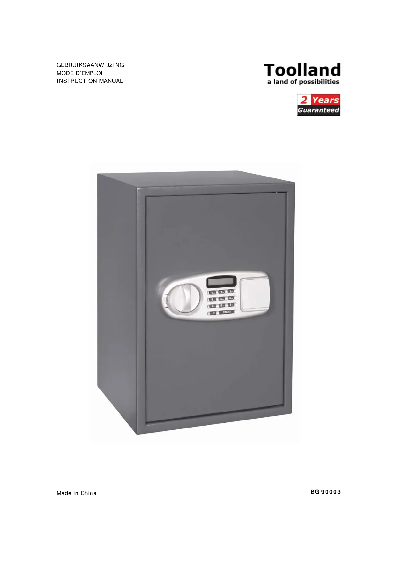 BG90003 - Coffre-fort Toolland - Notice d'utilisation et mode d'emploi gratuit