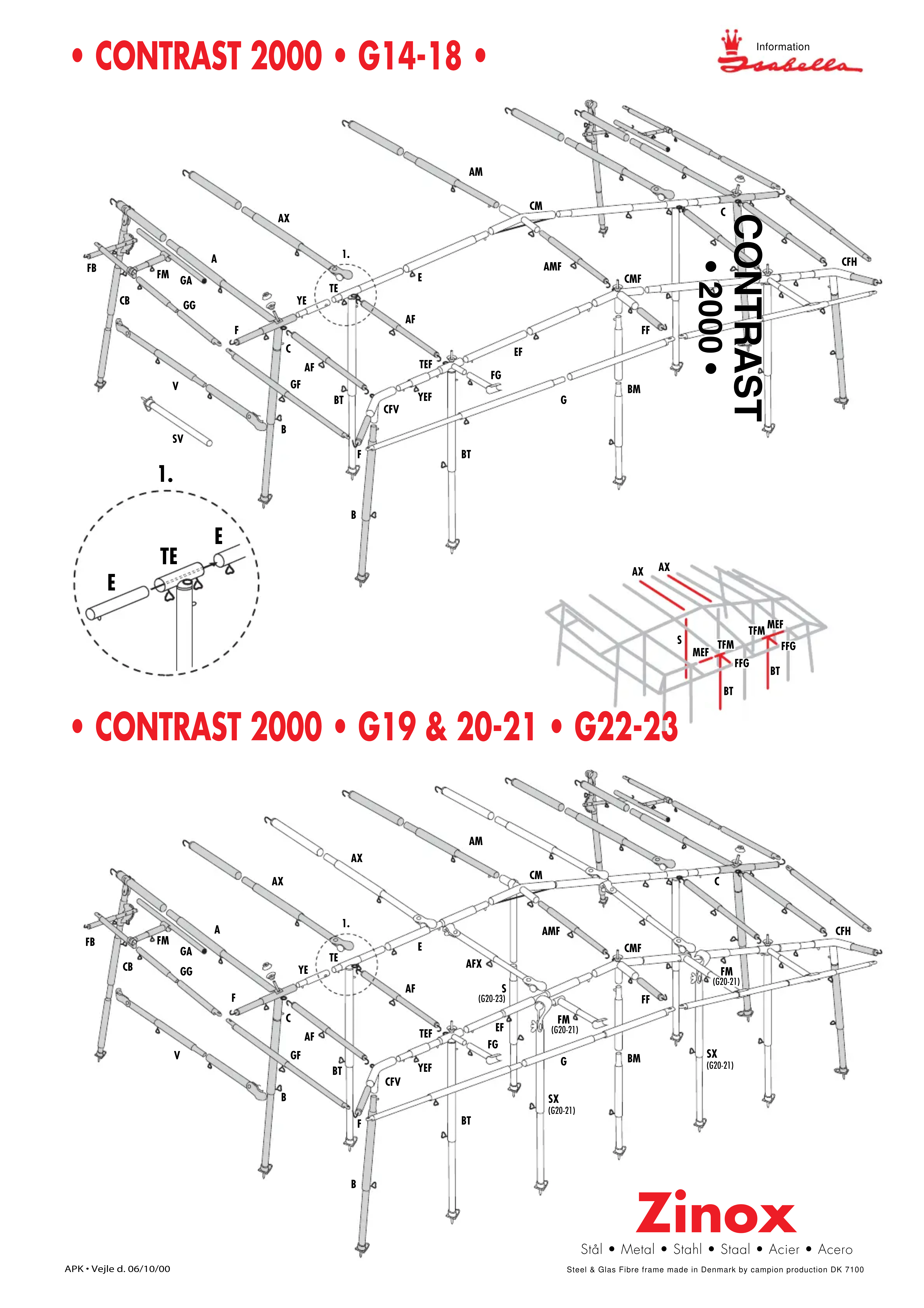 FB CM FM GA GG A YE TE AF CFV B VF GF BT BF CT AEF TF EF FG YEF BT CFH 1. E AFX S (G20-23) AMF CMF FM (G20-21) FF GM SX (G20-21) BM SX (G20-21) Zinox Stål • Metal • Stahl • Staal • Acier • AceroMonteringsanvisning • Erection Instructions • Aufbauanleitung • Opbouwinstructie • Instruction de Montage • Instrucciones de montaje