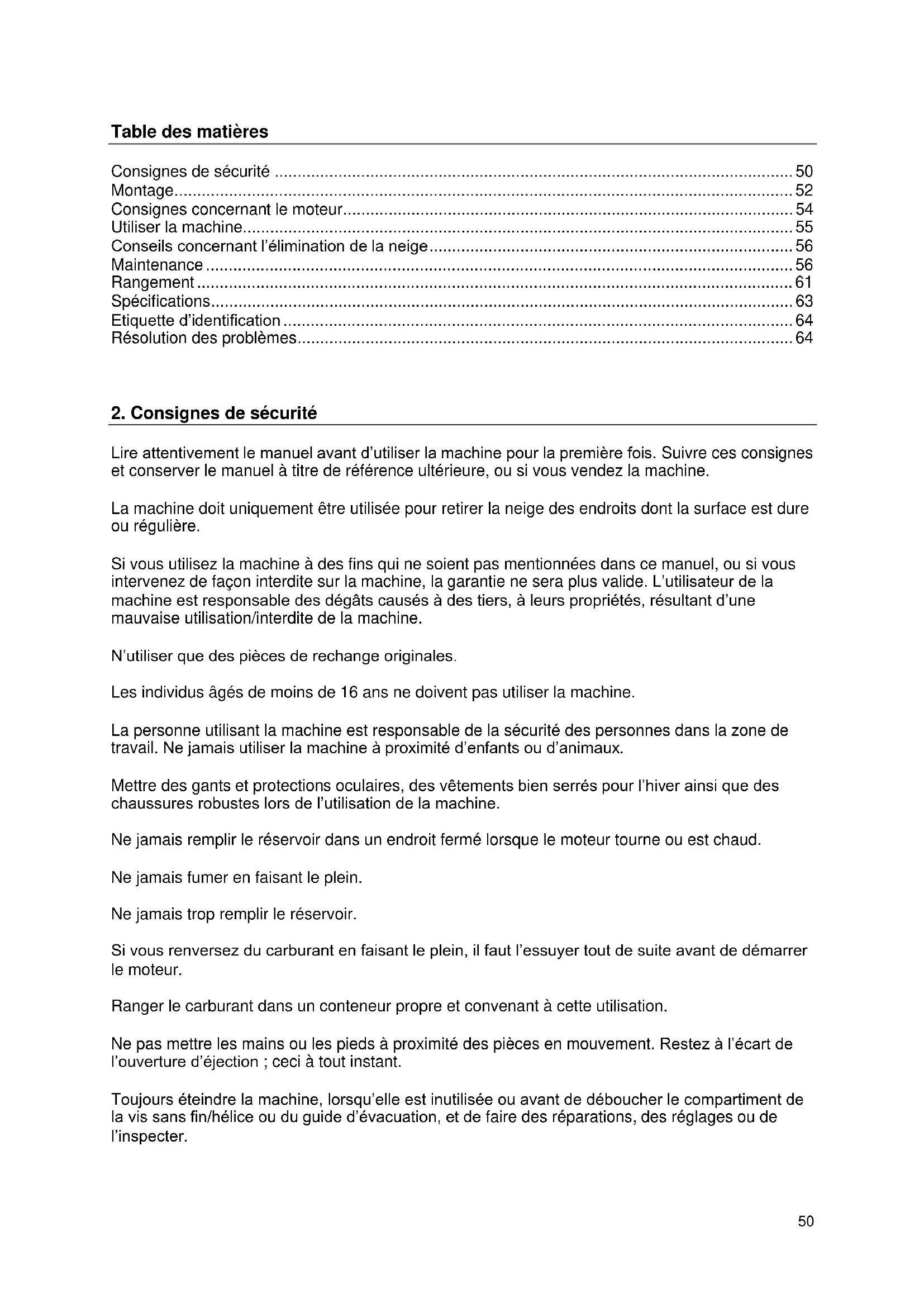 Consignes de sécurité 50