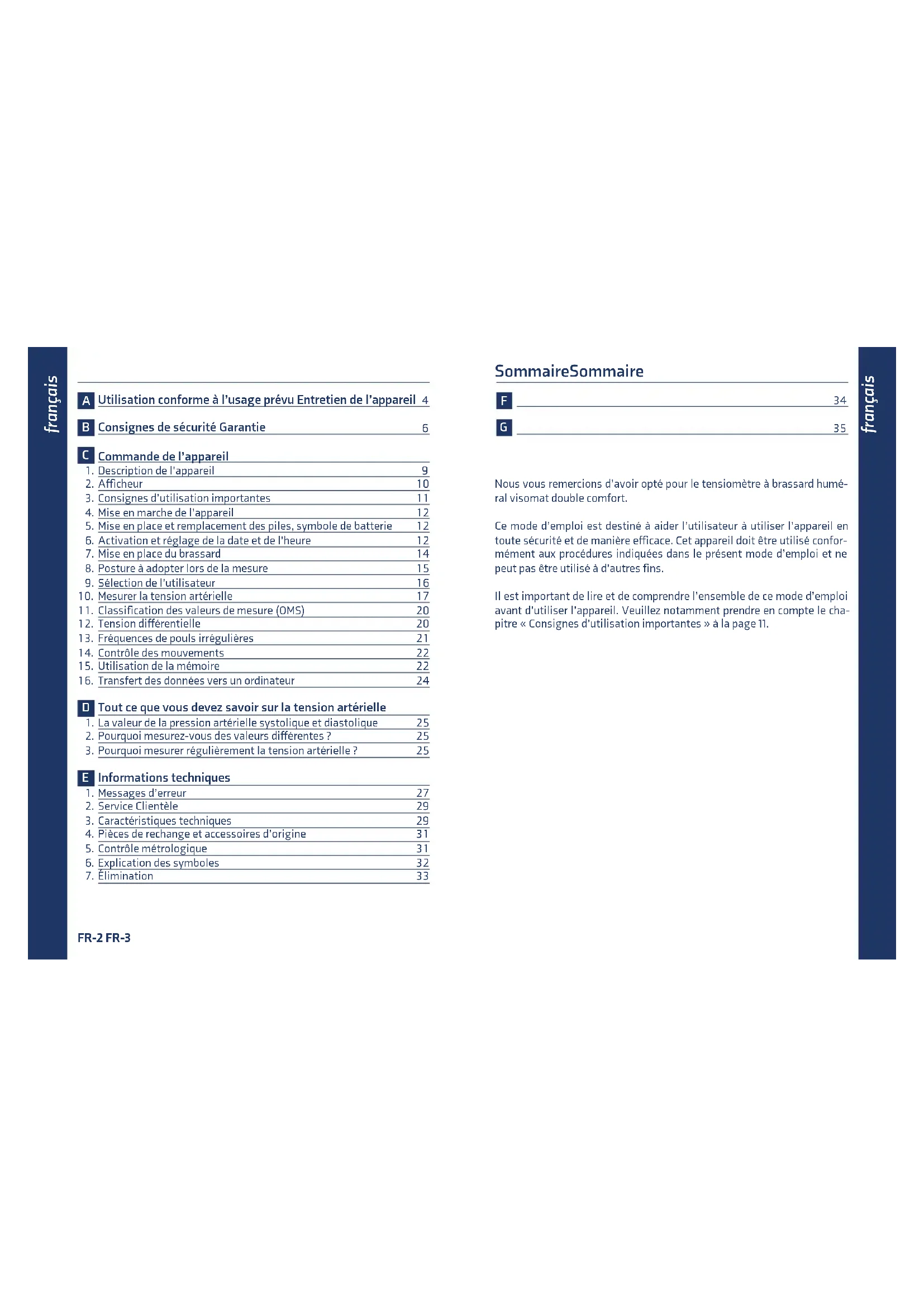 Nous vous remercions d'avoir opté pour le tensionmetre à brassard huméral visomat double comfort.