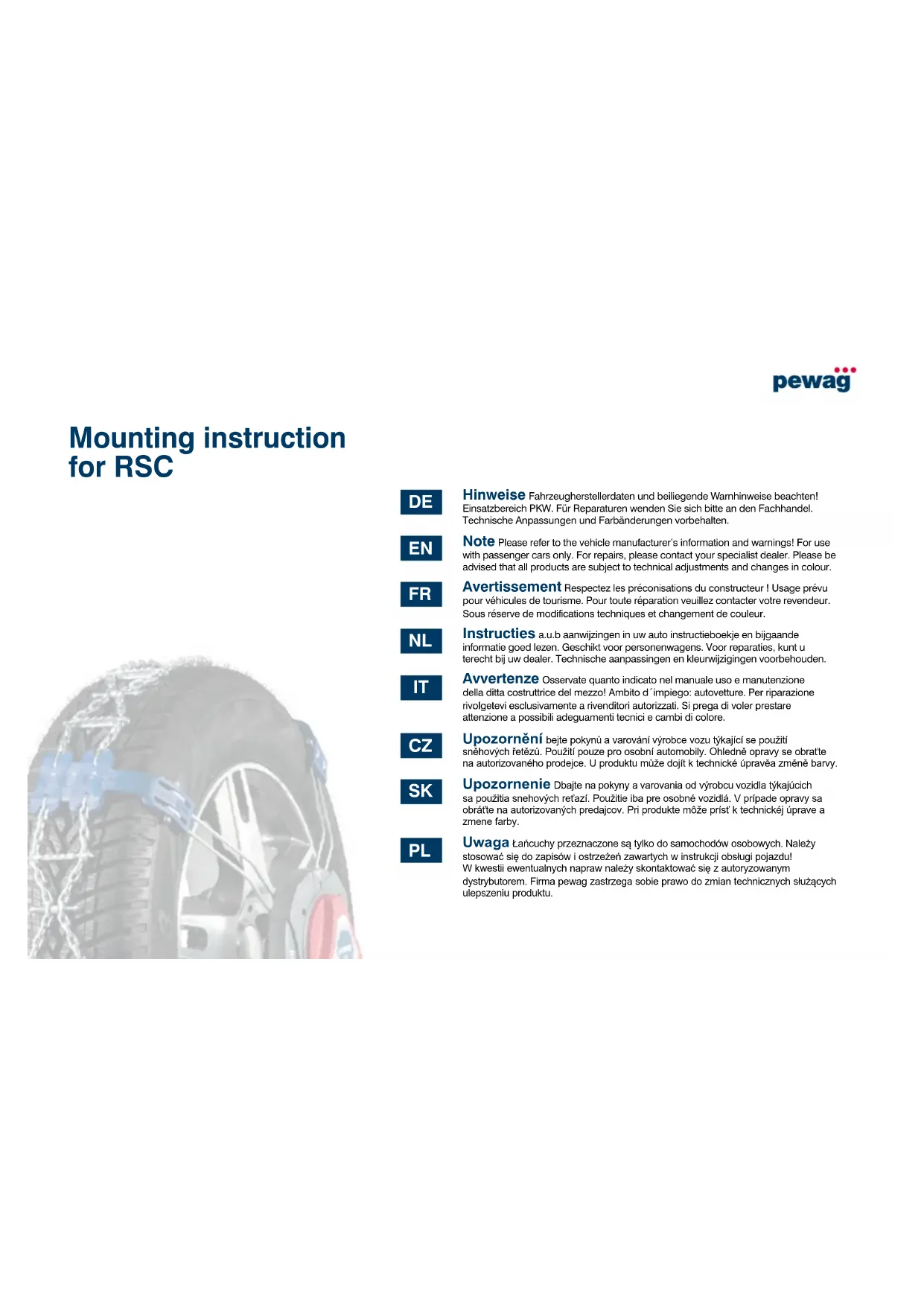 Servo - Chaîne à neige Pewag - Notice d'utilisation et mode d'emploi gratuit