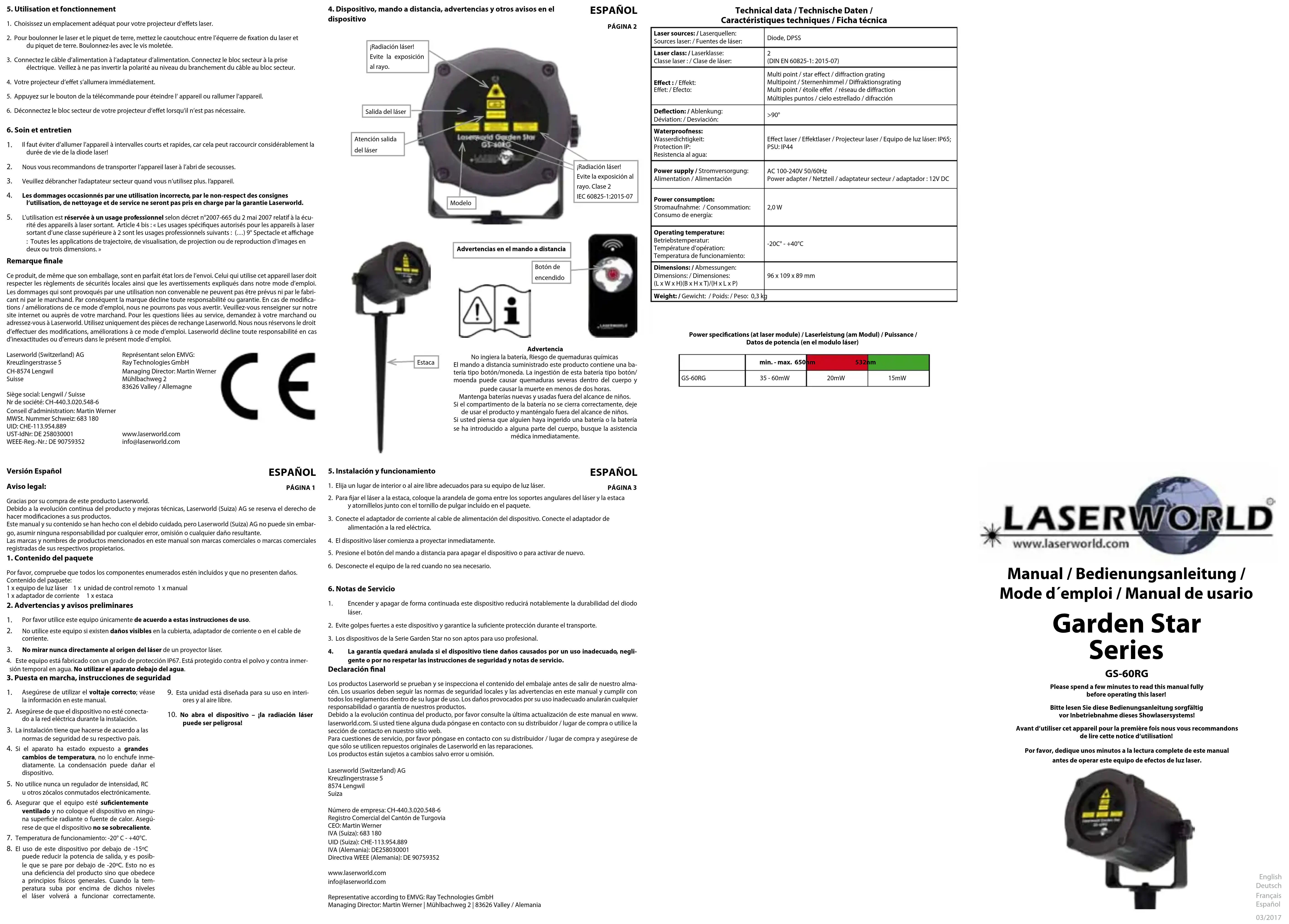 Retrouvez gratuitement la notice de l'appareil GS60RG Laserworld au format PDF.