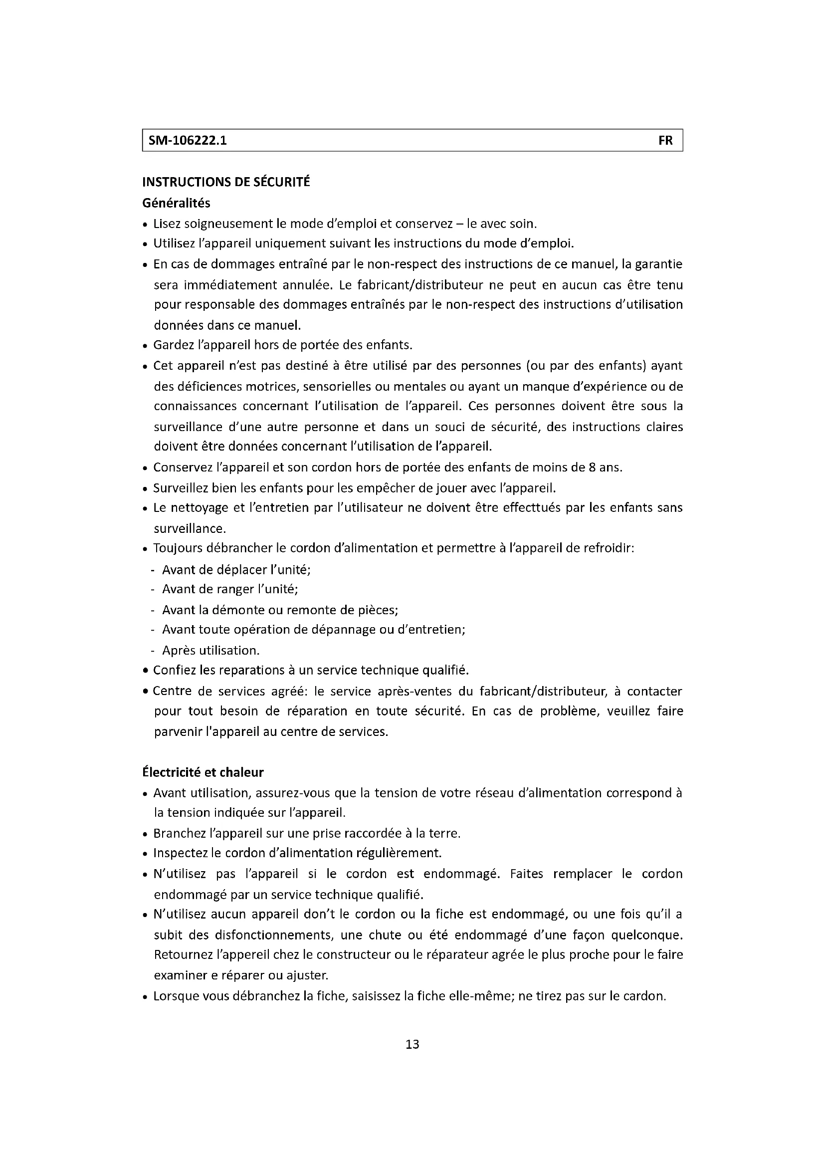 - Utilisez l'appareil uniquement suivant les instructions du mode d'emploi.