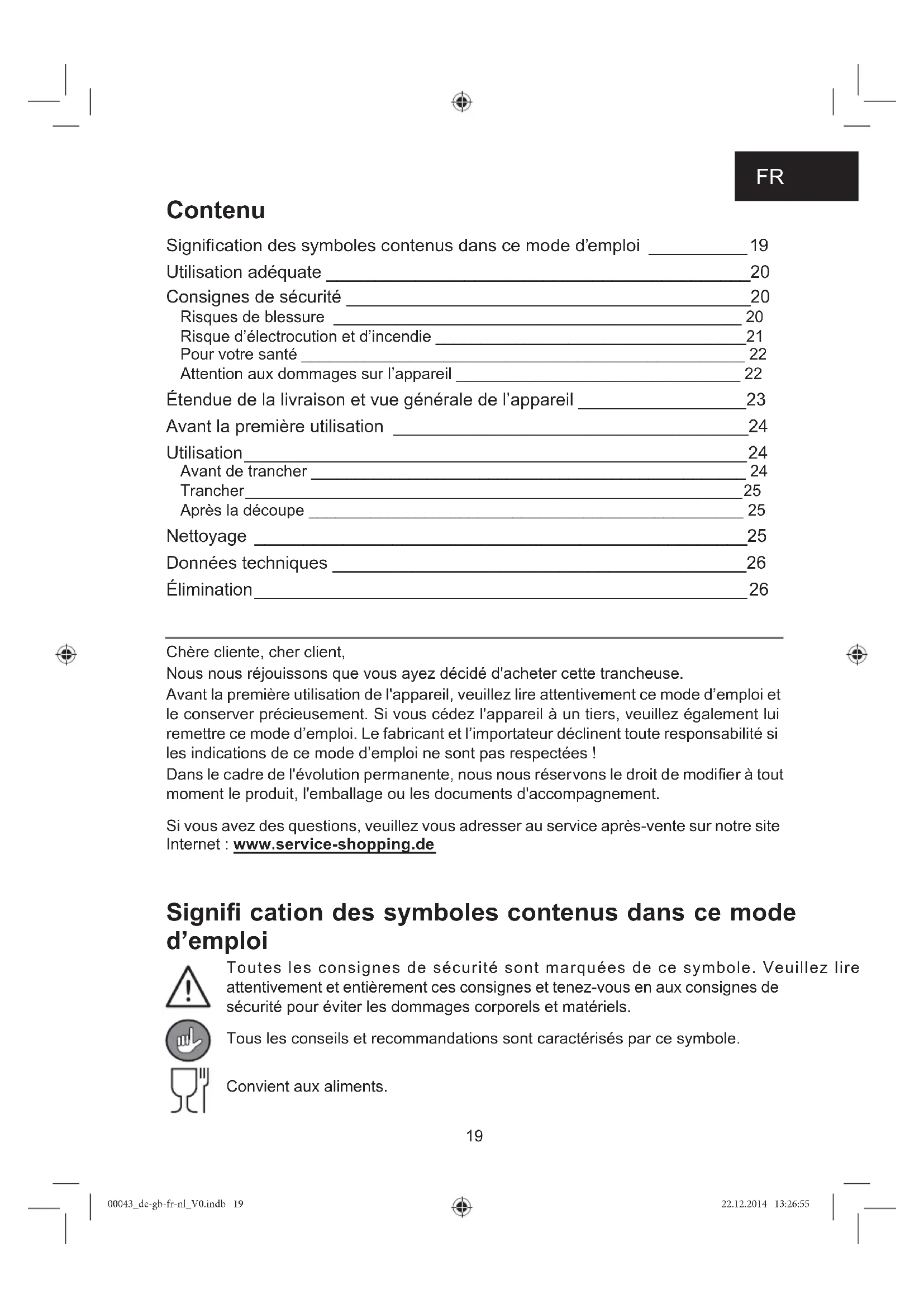 Nous nous réjouissons que vous ayez décidé d'acheter cette trancheuse.