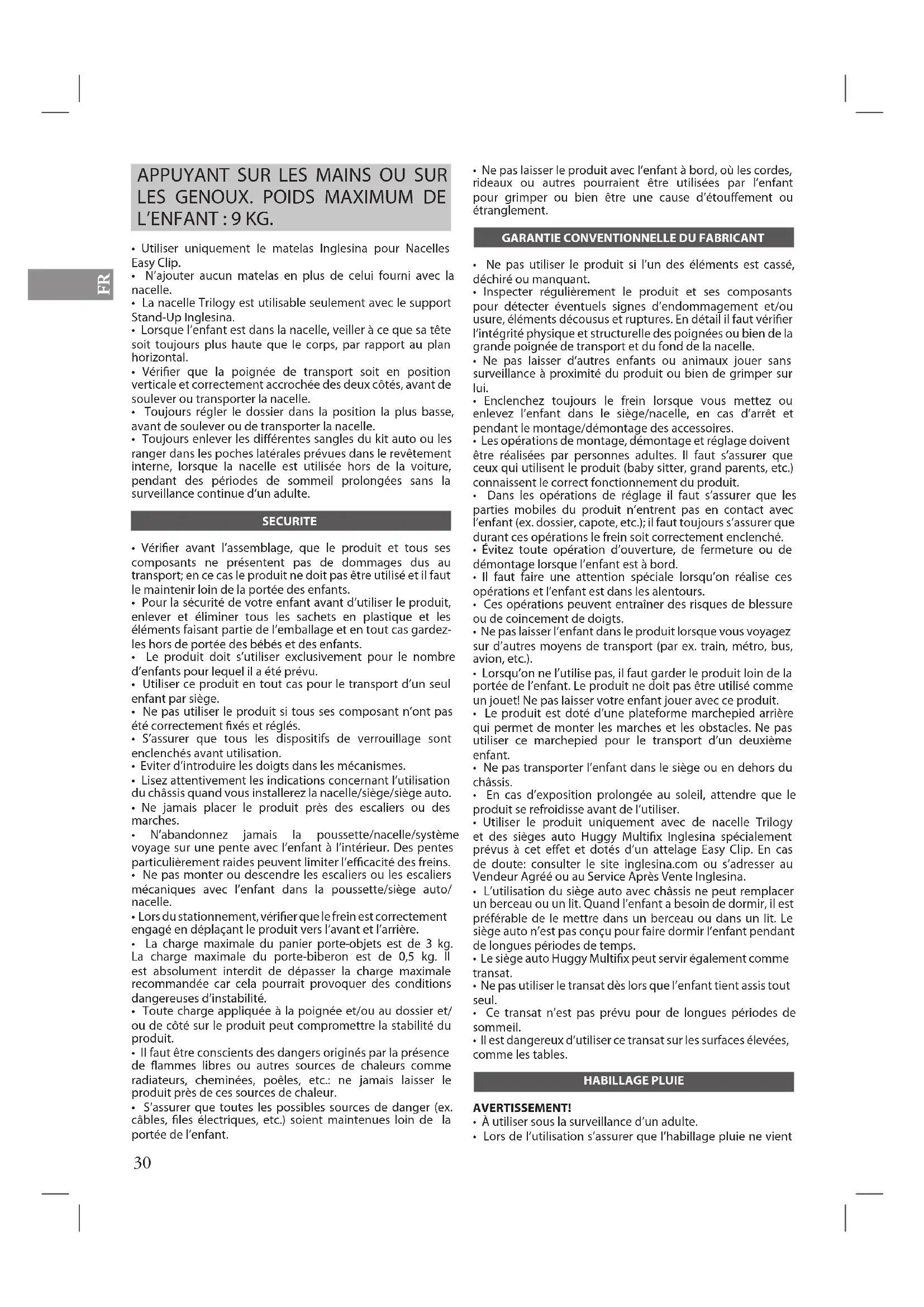 - Inglesina Baby S.p.A. décline toute responsabilité quant aux dommages causés aux personnes et aux biens à la suite d’une utilisation impropre et/ou incorrecte du produit.