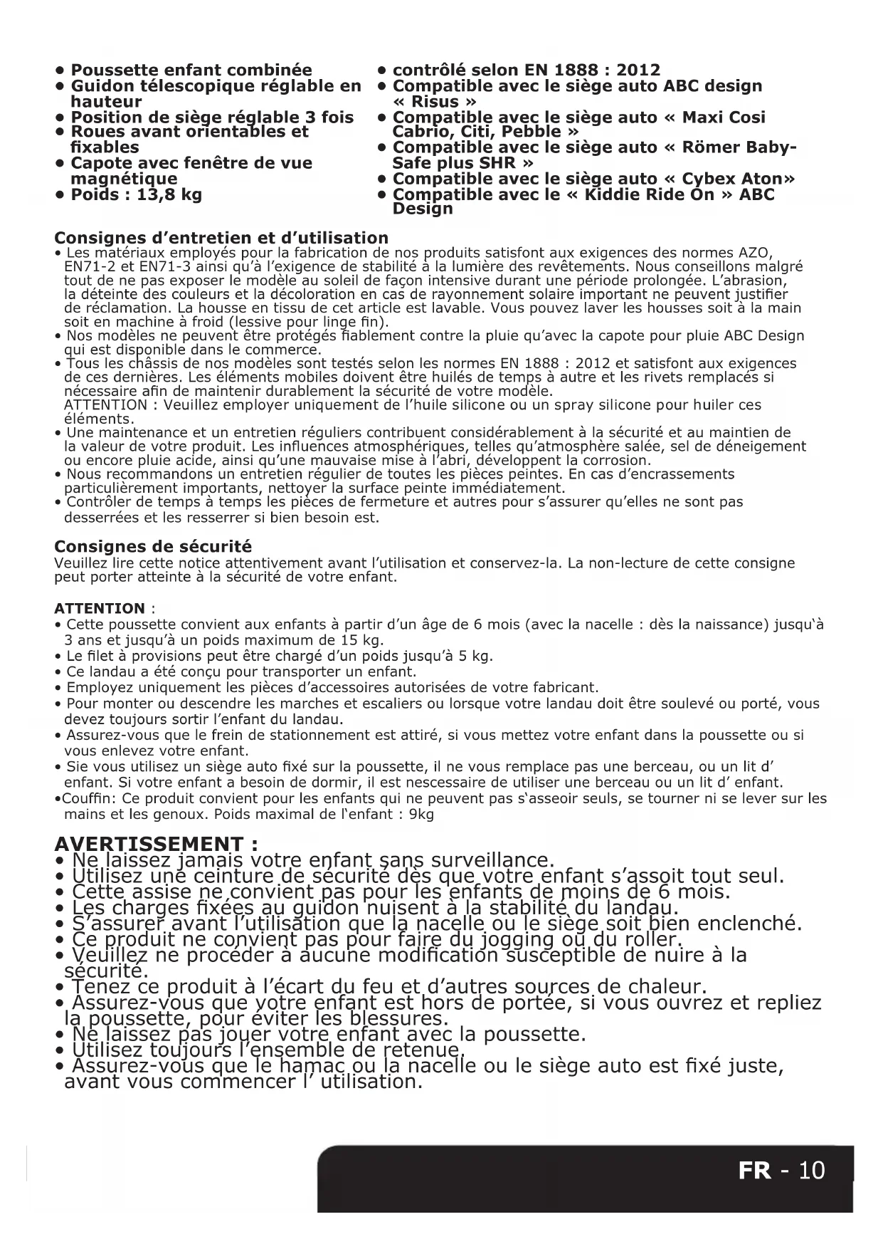 - Compatible avec le « Kiddie Ride On » ABC Design Consignes d’entretien et d’utilisation