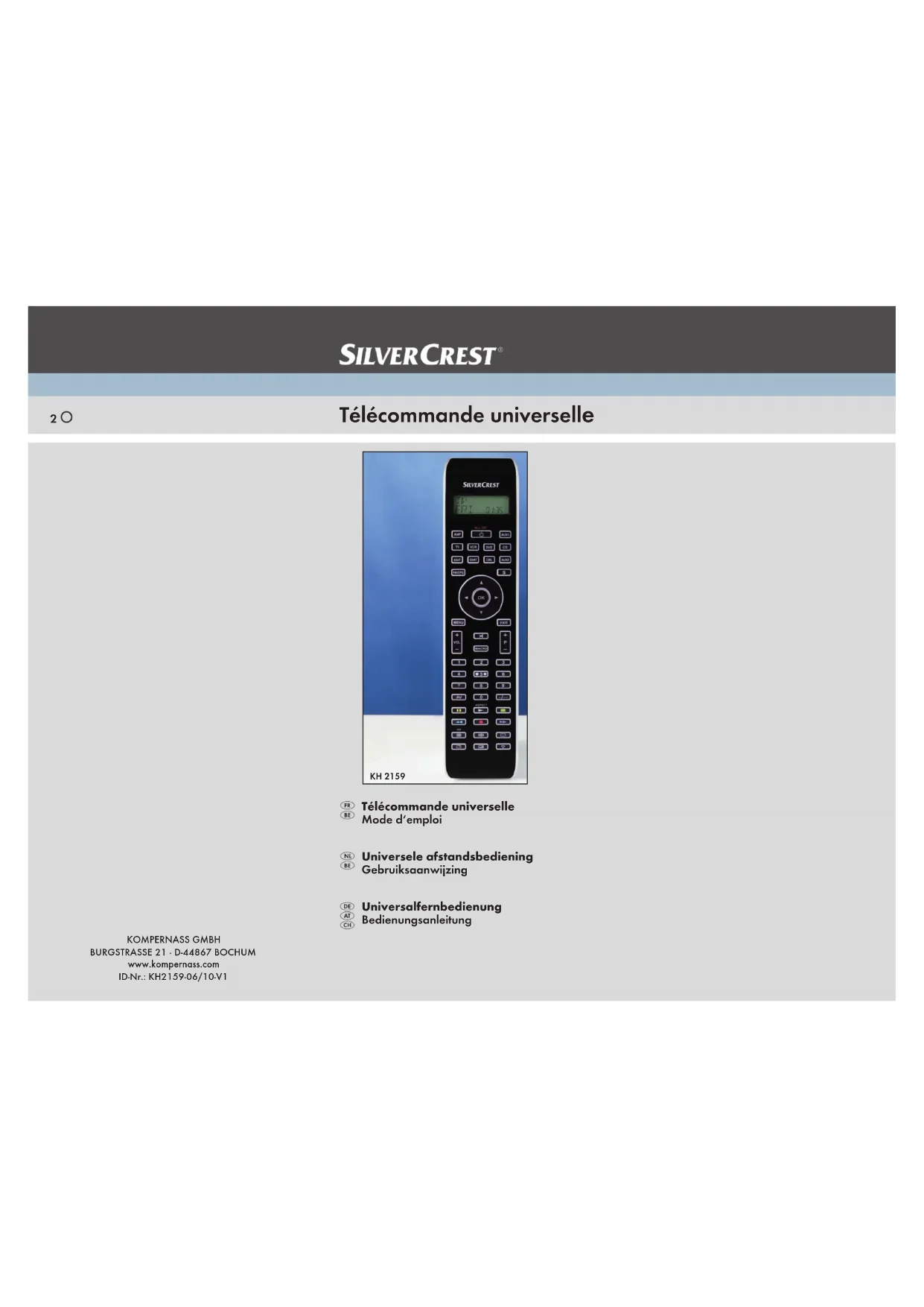 KH 2159 - Télécommande SILVERCREST - Notice d'utilisation et mode d'emploi gratuit
