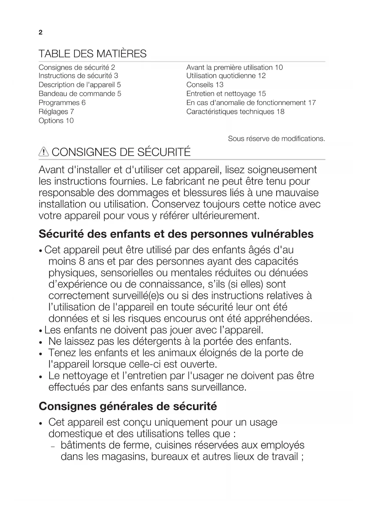 Le nettoyage et l’entretien par l'usager ne doivent pas être effectués par des enfants sans surveillance. Consignes générales de sécurité