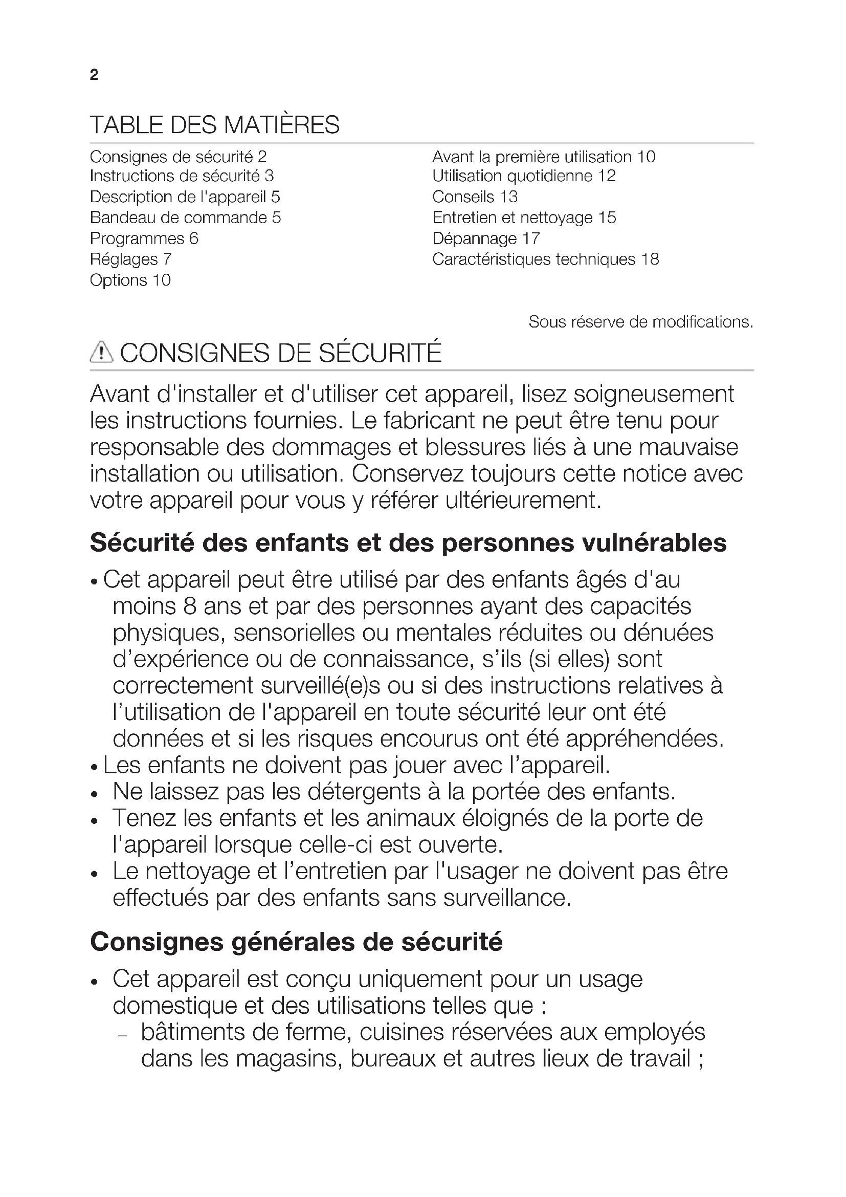 Le nettoyage et l’entretien par l'usager ne doivent pas être effectués par des enfants sans surveillance. Consignes générales de sécurité