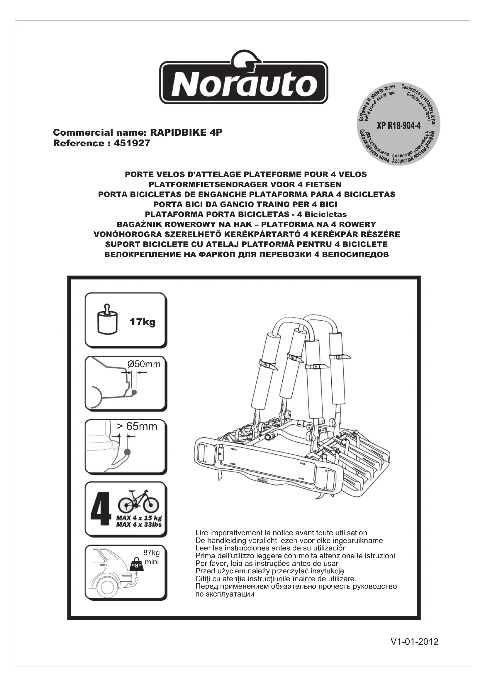 Rapidbike 4P - Porte-vélo NORAUTO - Notice d'utilisation et mode d'emploi gratuit