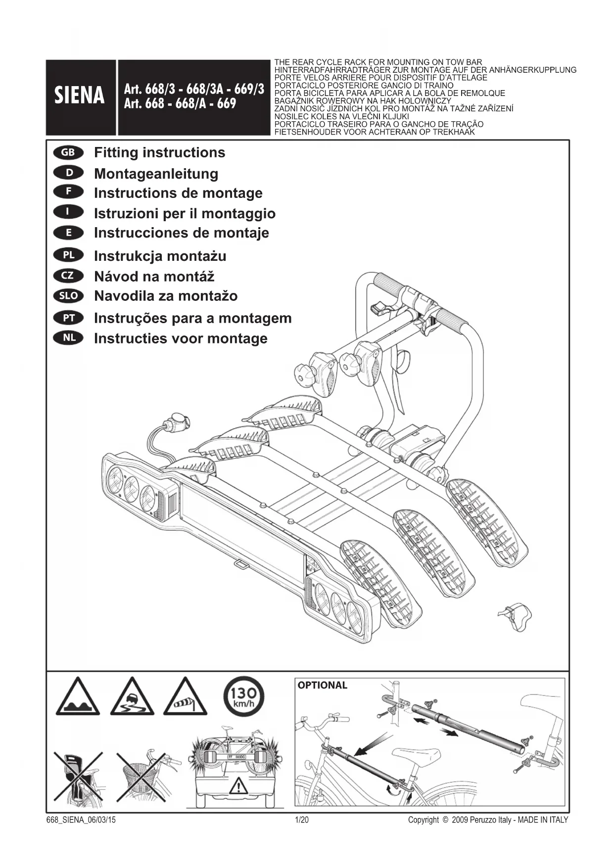 Téléchargez la notice de votre Porte-vélo au format PDF gratuitement ! Retrouvez votre notice Siena - Peruzzo et reprennez votre appareil électronique en main. Sur cette page sont publiés tous les documents nécessaires à l'utilisation de votre appareil Siena de la marque Peruzzo.