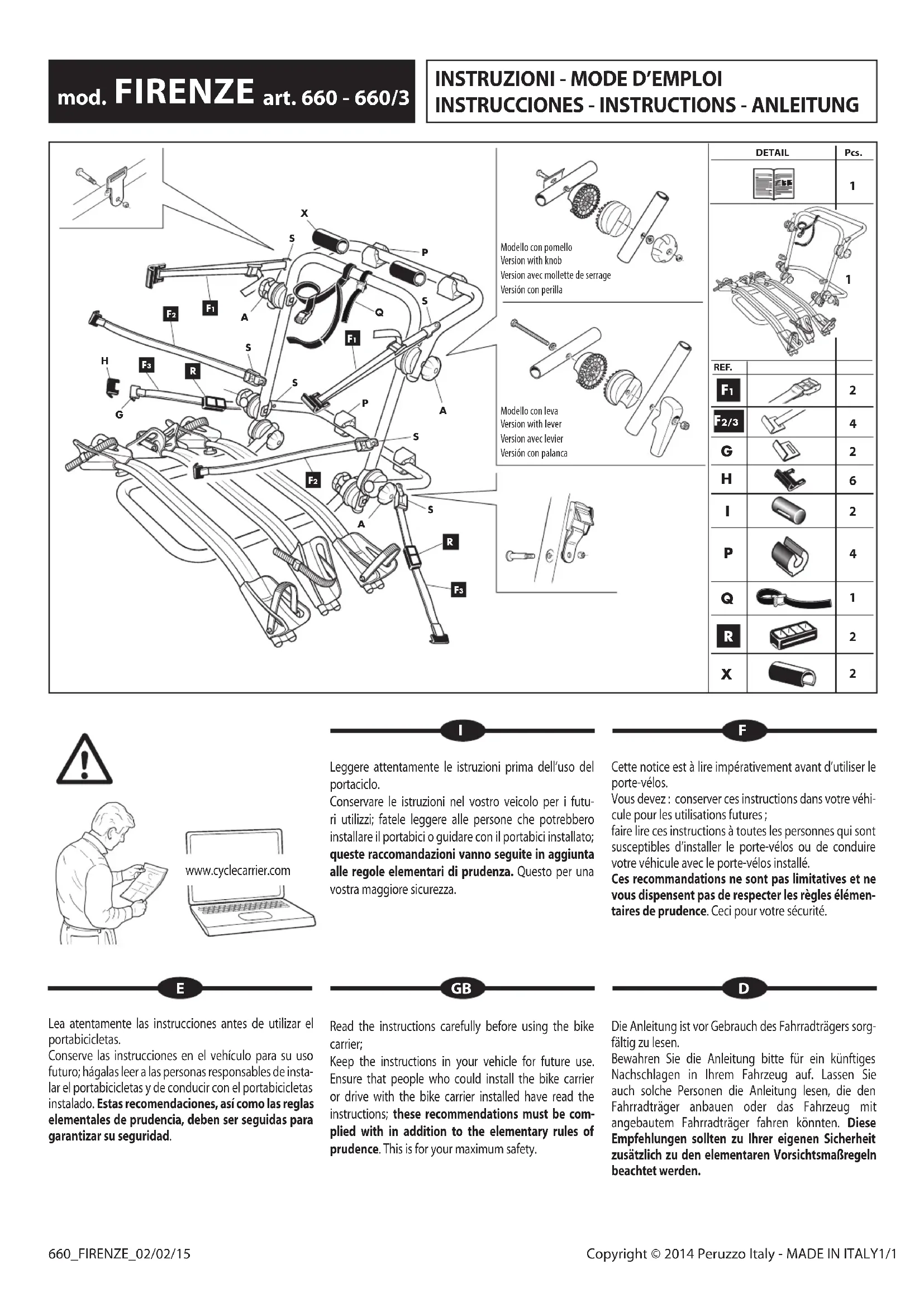 Firenze - Porte-vélo Peruzzo - Notice d'utilisation et mode d'emploi gratuit