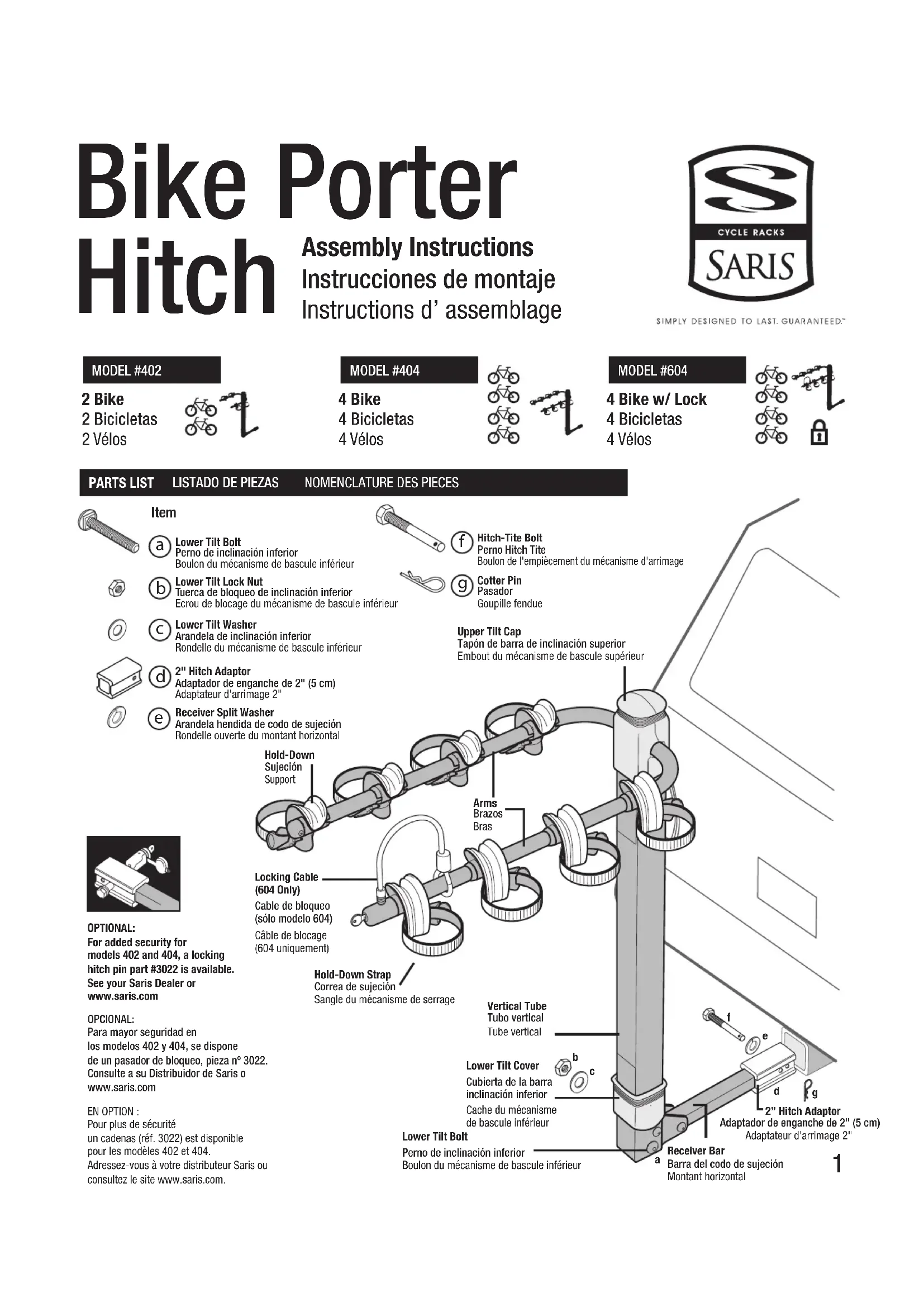 Retrouvez gratuitement la notice de l'appareil Bike Porter Hitch Saris au format PDF.