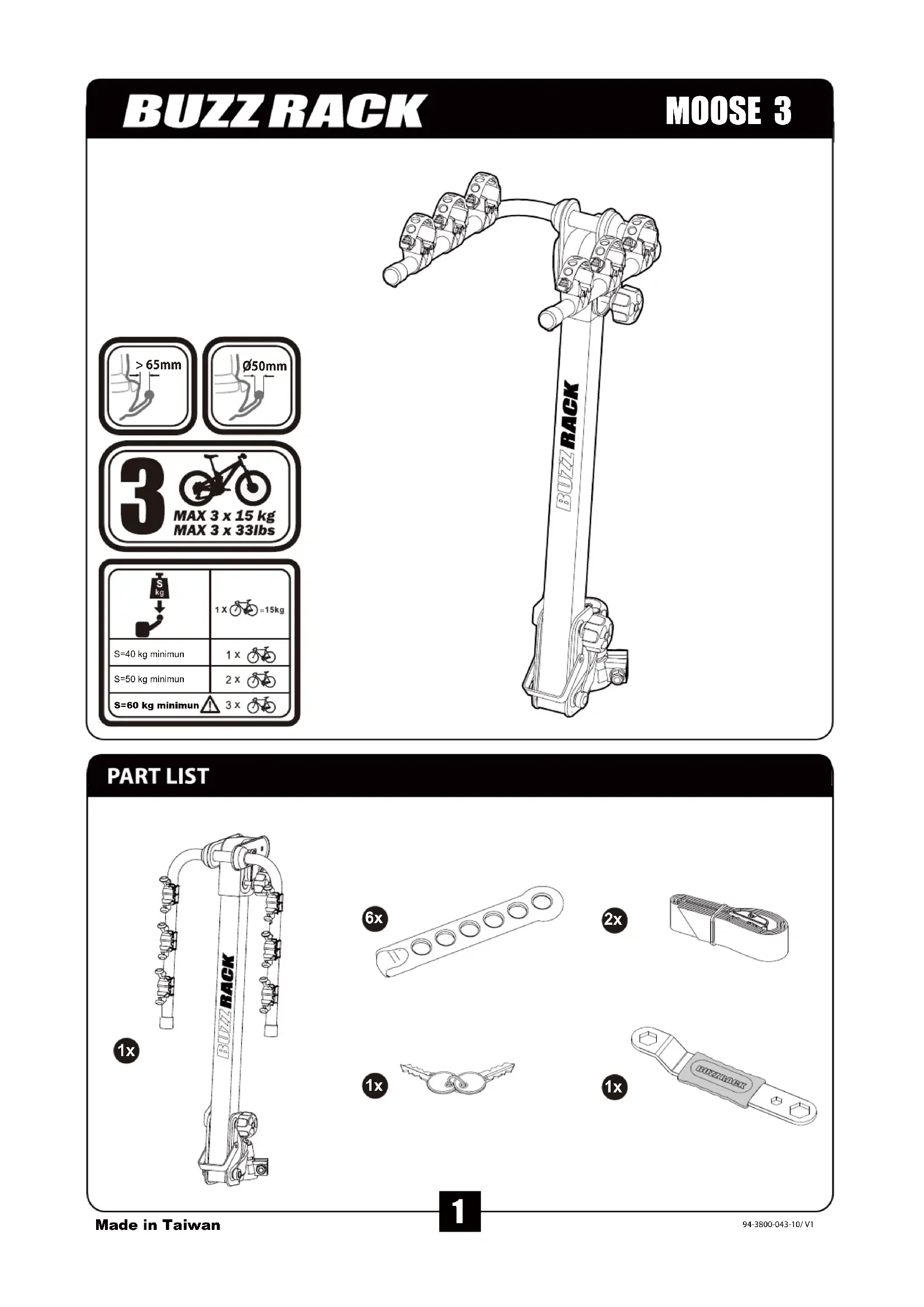 MODE D'EMPLOI Moose 3 Buzz Rack