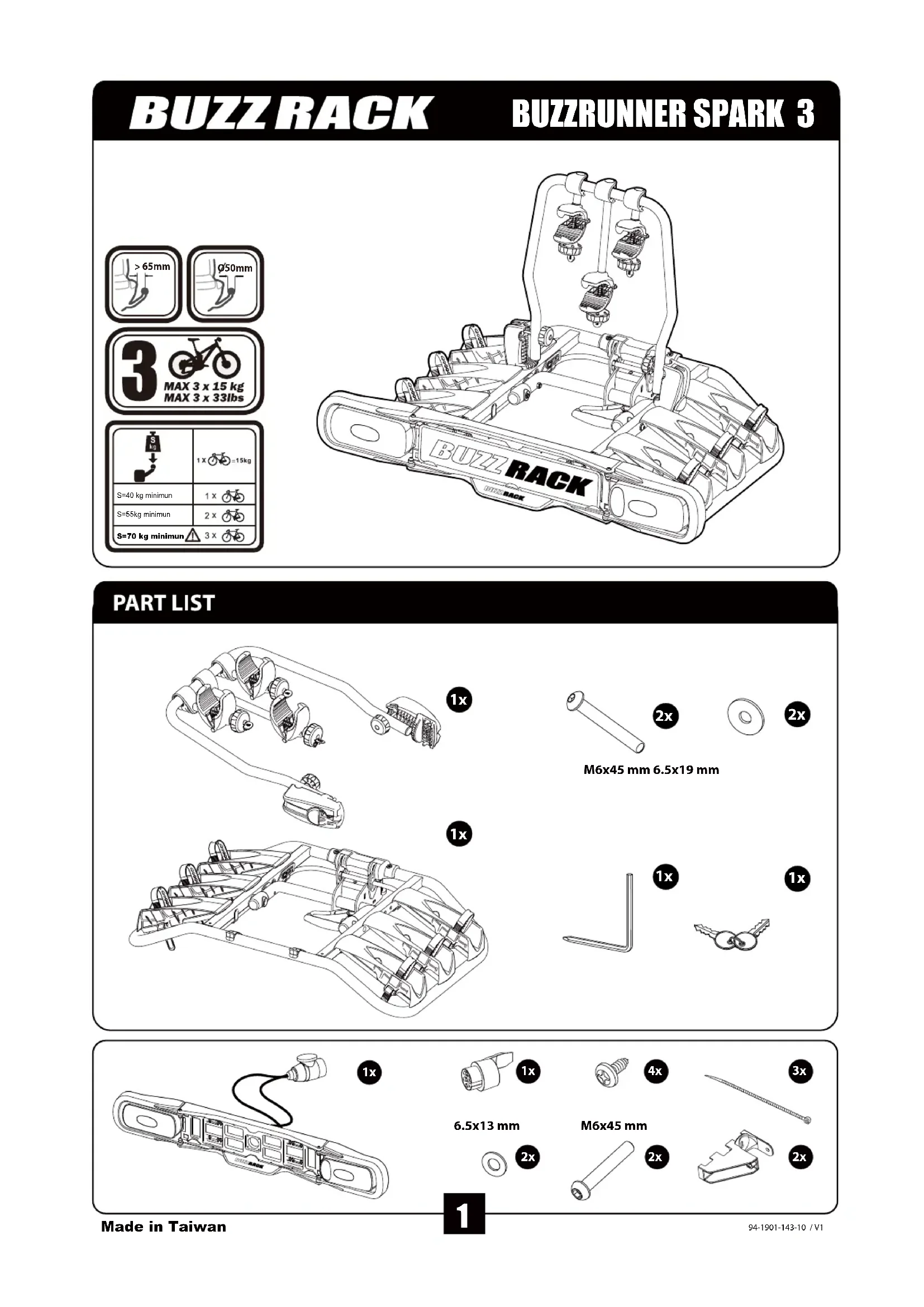 Retrouvez gratuitement la notice de l'appareil Buzzrunner Spark 3 Buzz Rack au format PDF.