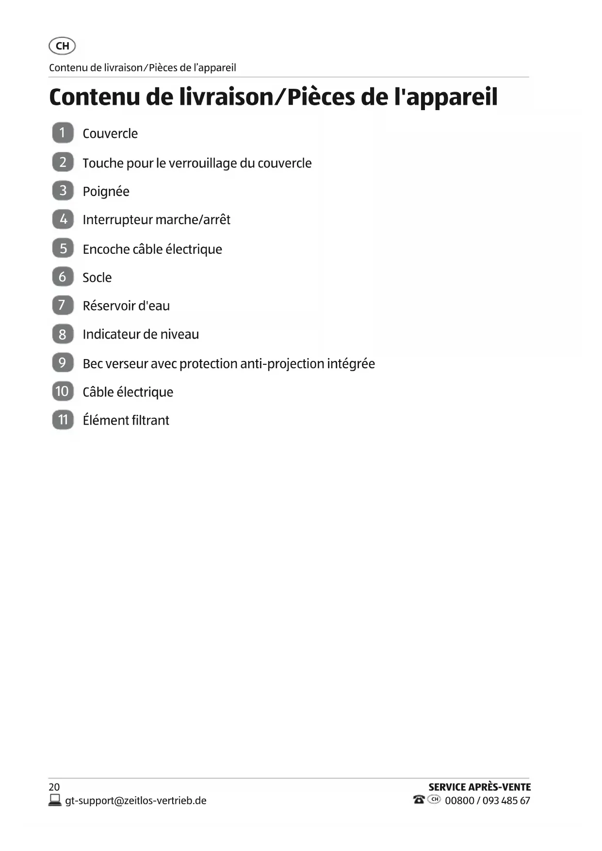 Contenu de livraison/PIèces de l'appareil 20