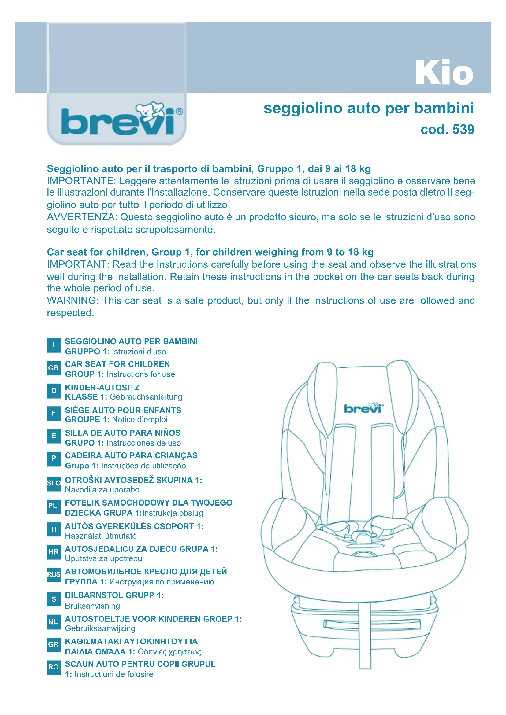 Kio - Siège de voiture Brevi - Notice d'utilisation et mode d'emploi gratuit
